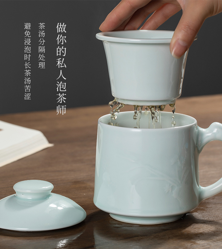 昌南茶杯 景德镇陶瓷雕刻茶水分离泡水杯带盖茶具办公室杯子 茶杯/个