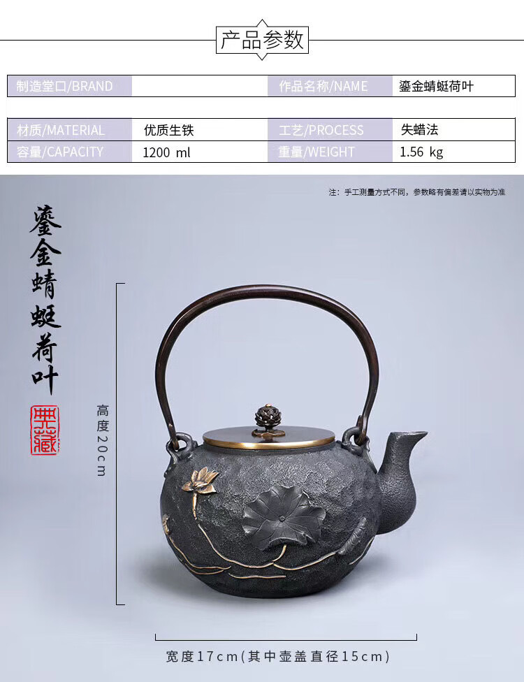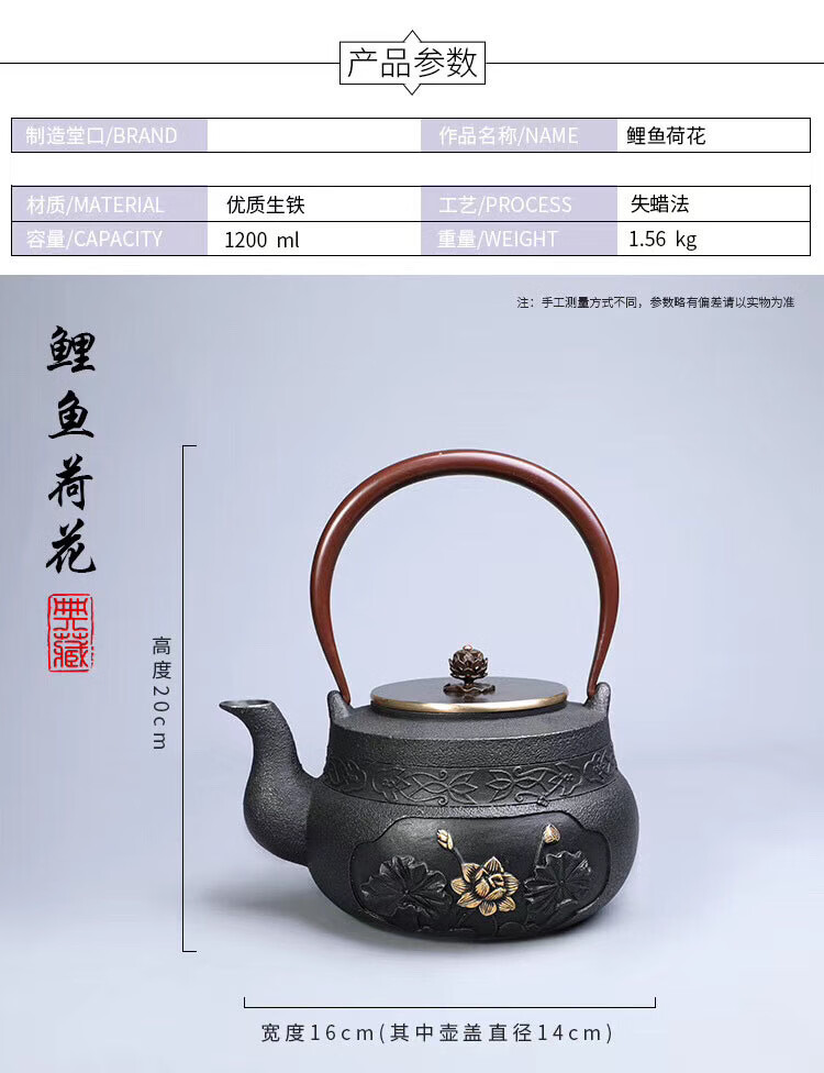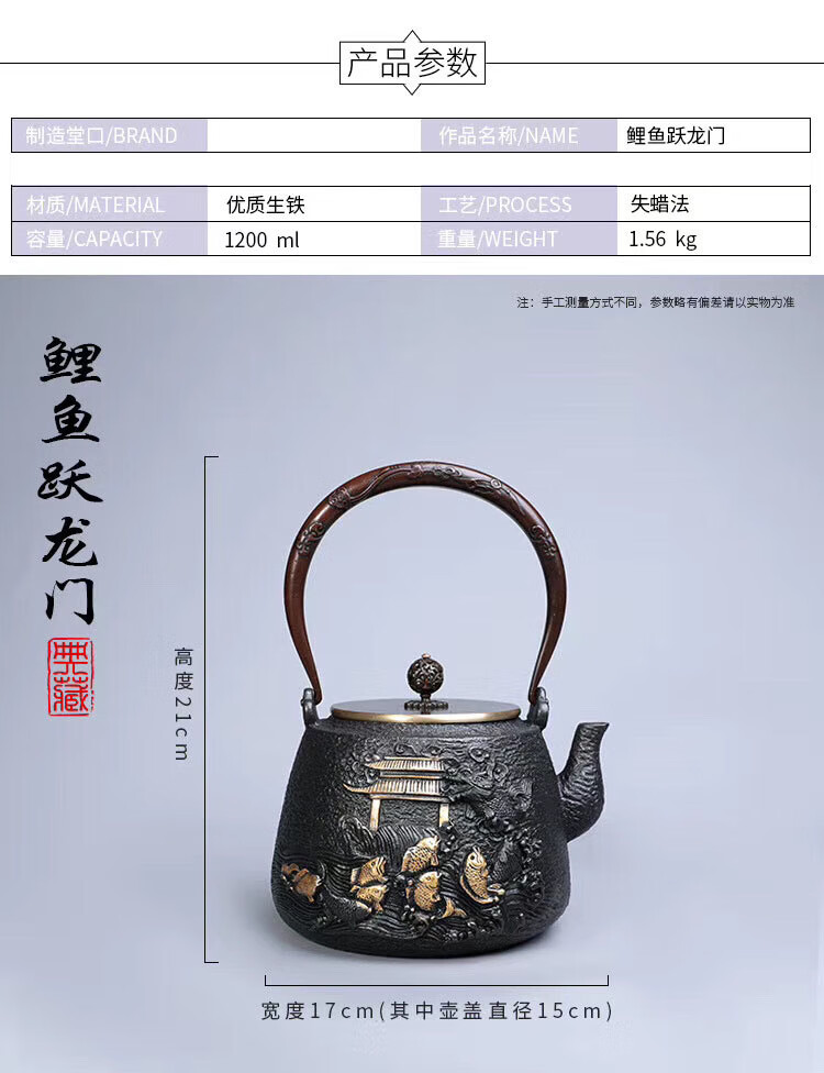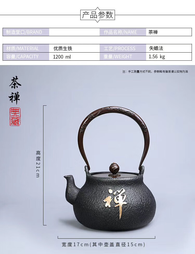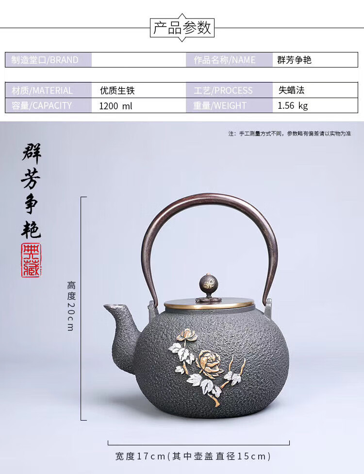商品名称: 百成道铁壶生铁茶壶烧水壶 盘龙云海 A/壶