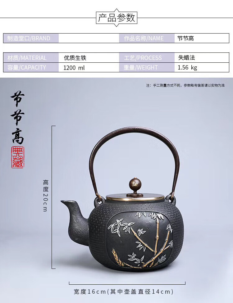 • 商品名称:百成道铁壶生铁茶壶烧水壶 盘龙云海 A/壶