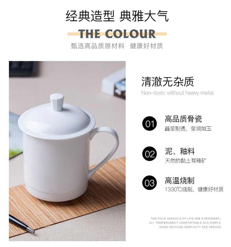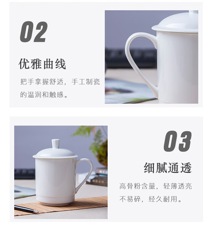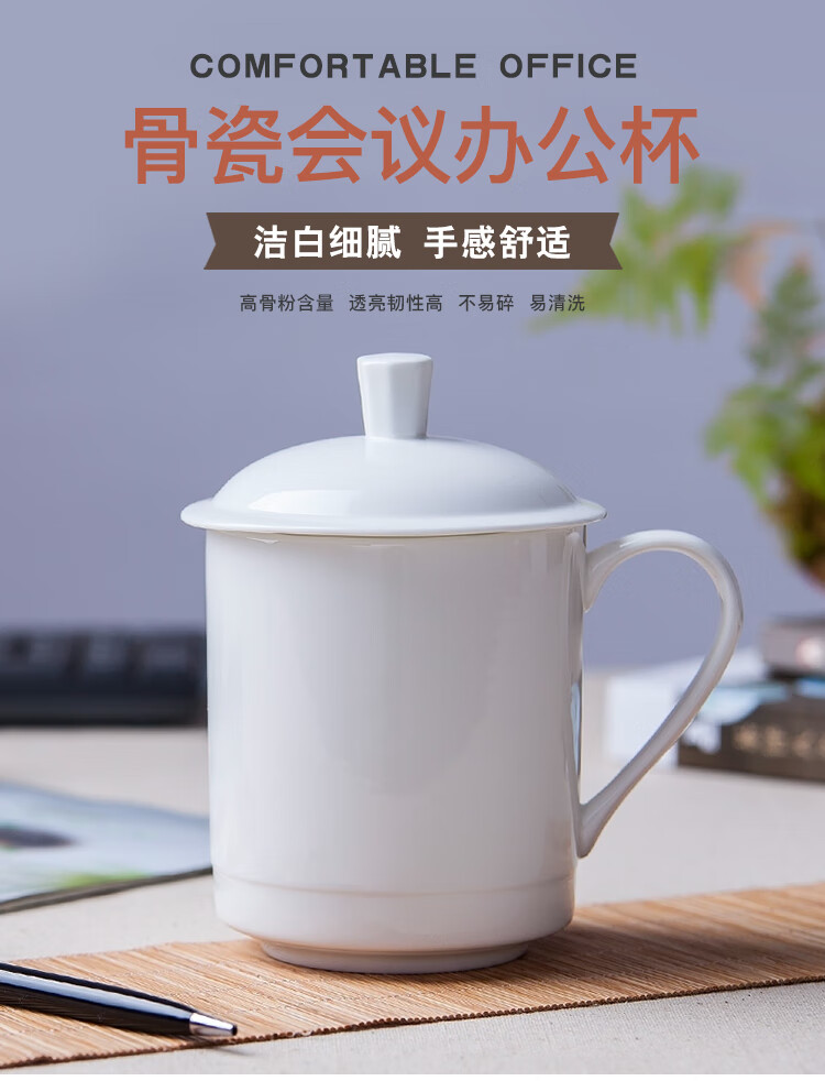 • 商品名称:陶相惠茶杯办公杯陶瓷杯纯白骨瓷带盖会议杯开会杯子定制公司LOGO刻字 会议杯-小号宫廷杯/个