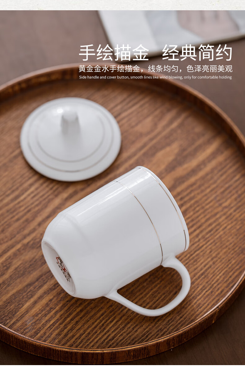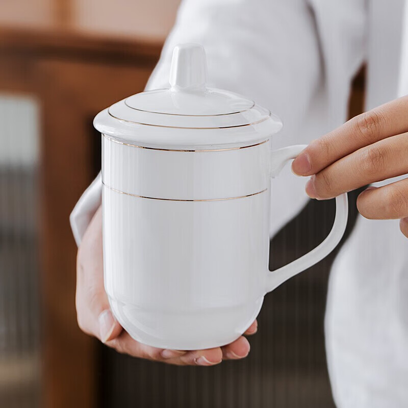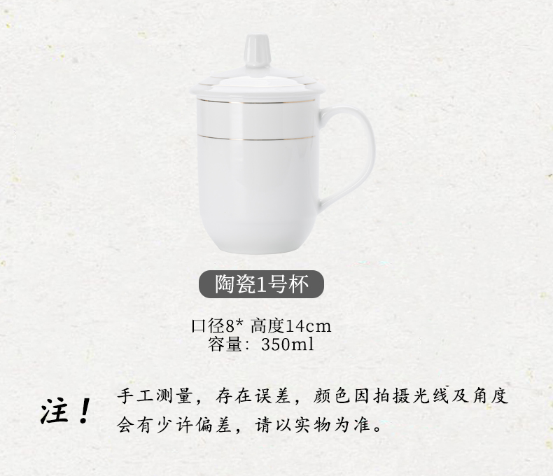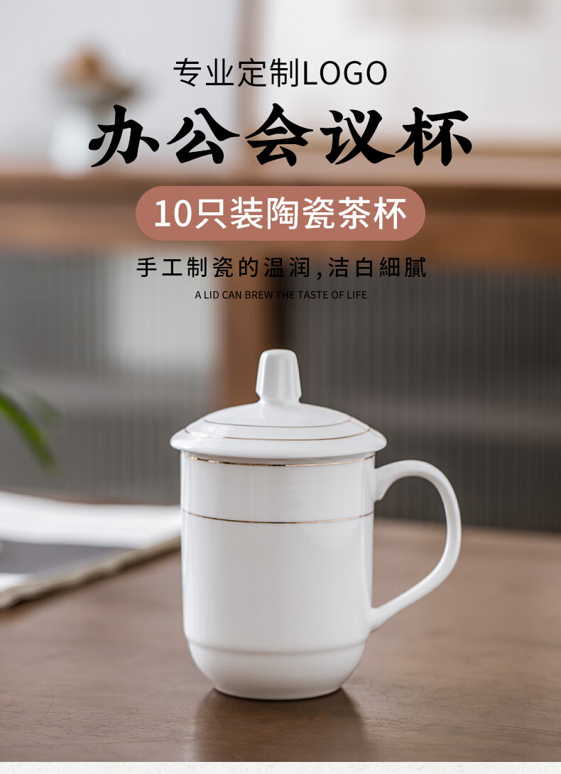 • 商品名称:陶相惠茶杯办公陶瓷杯会议杯带盖10只装商务会议开会杯子水杯套装350ml 陶瓷金边会议杯10个/套