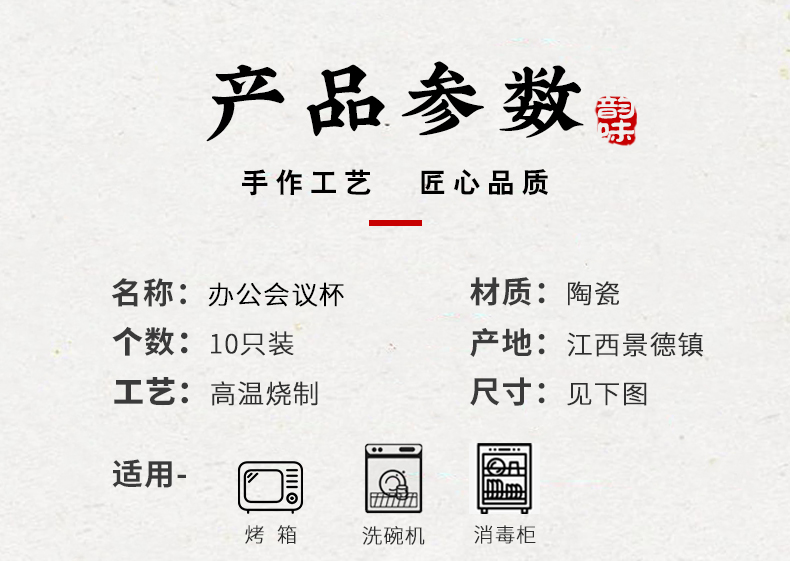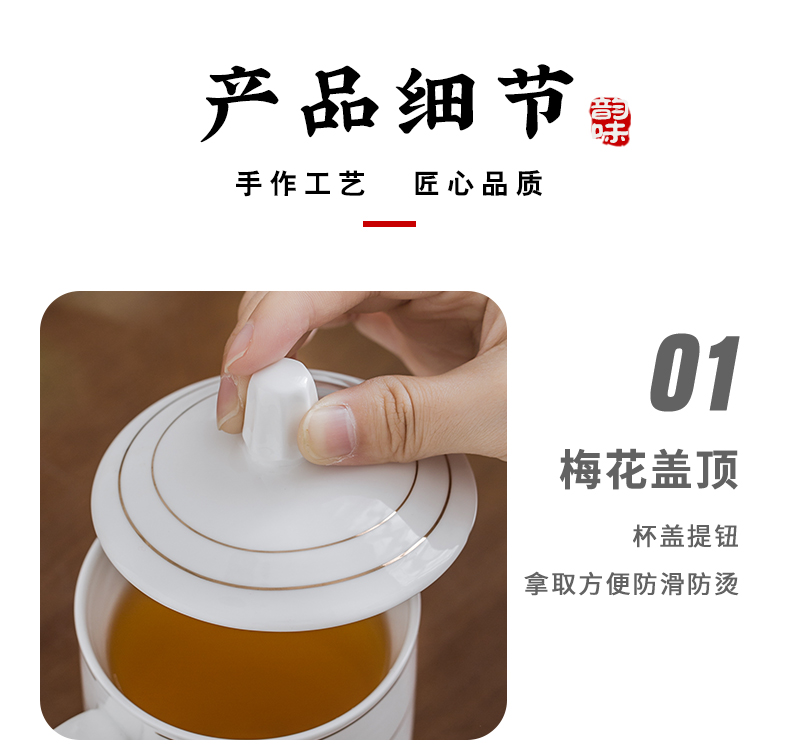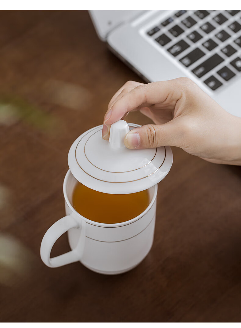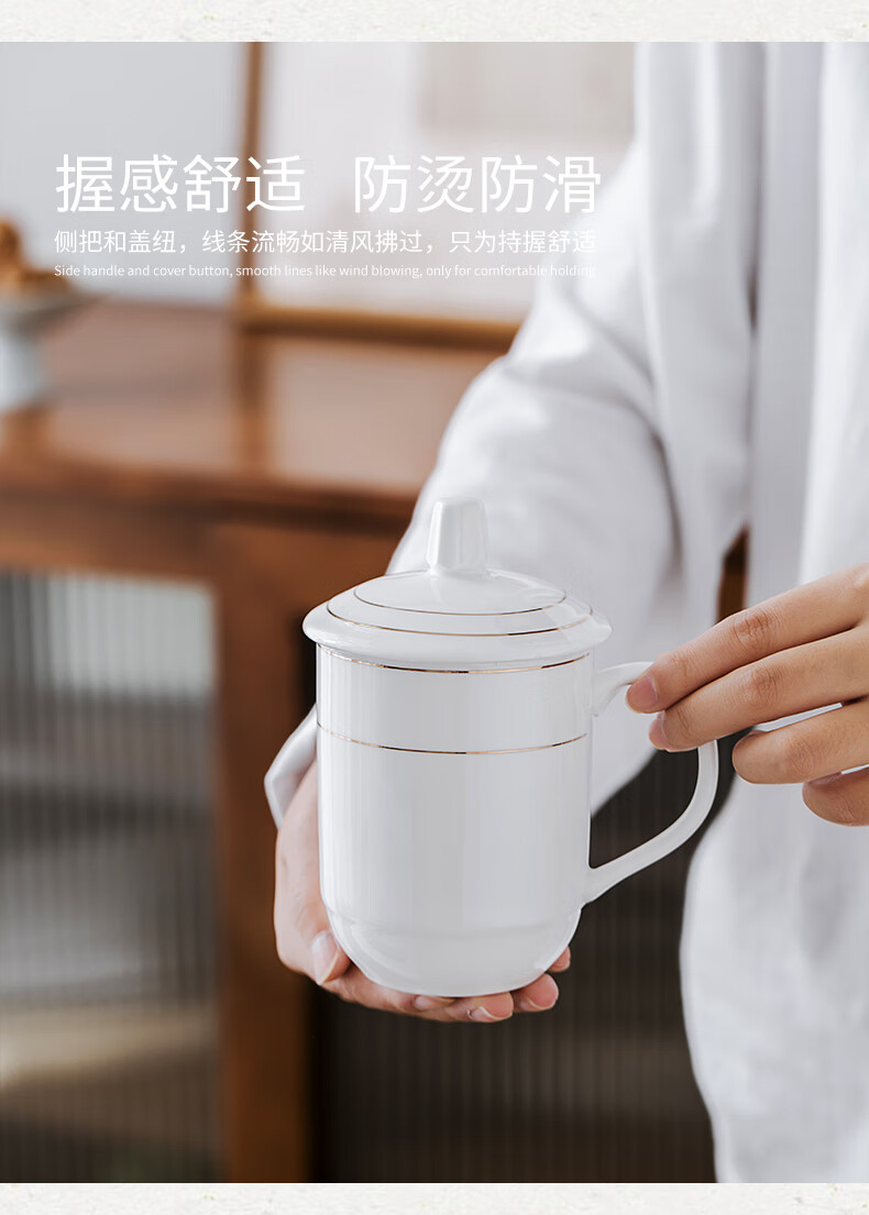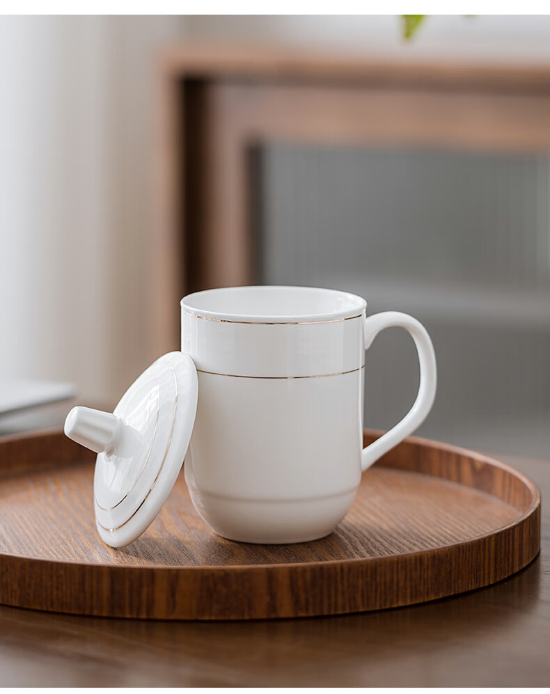 • 商品名称:陶相惠茶杯办公陶瓷杯会议杯带盖10只装商务会议开会杯子水杯套装350ml 陶瓷金边会议杯10个/套