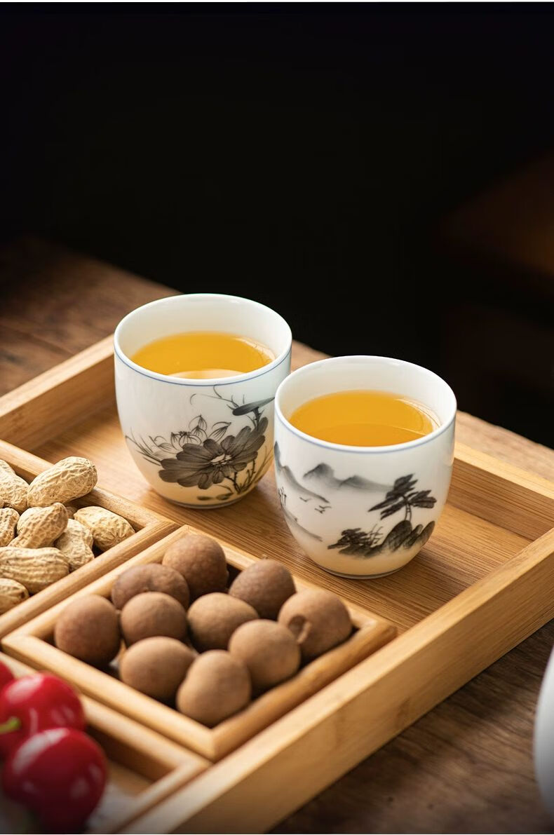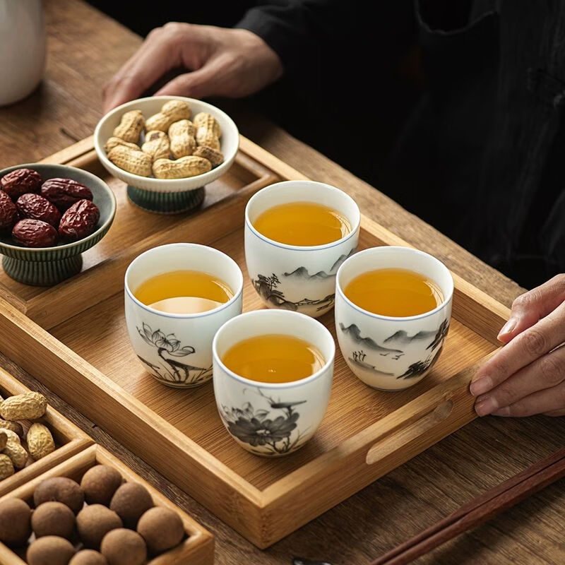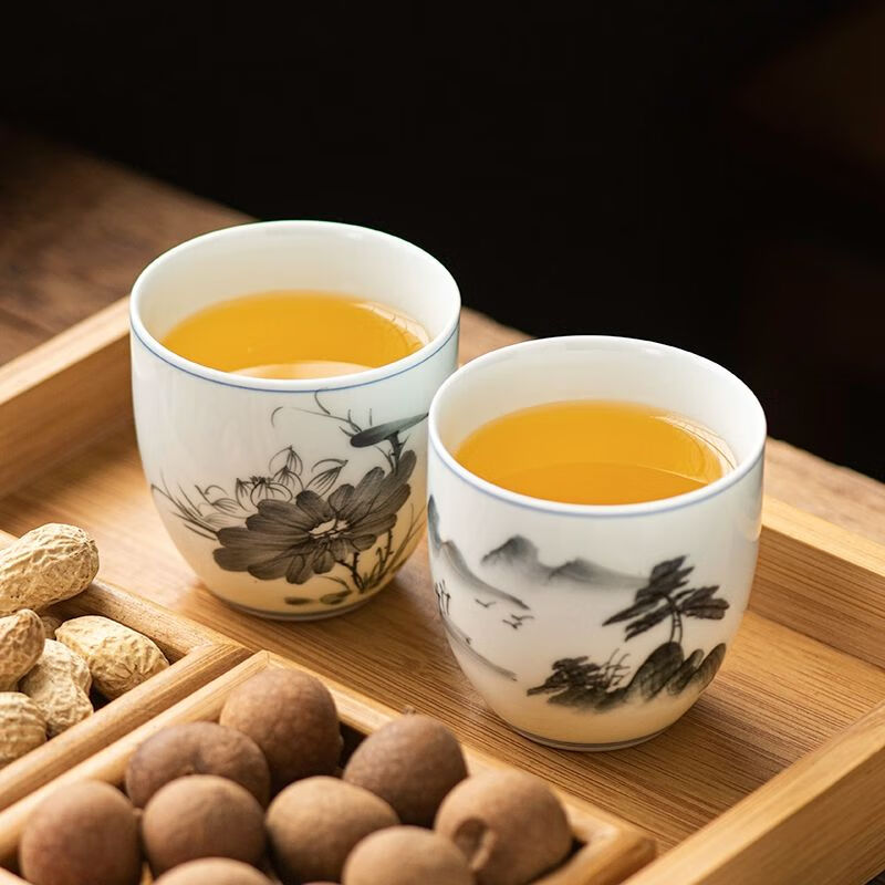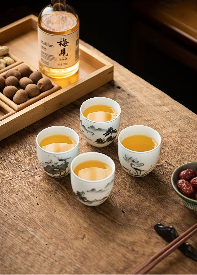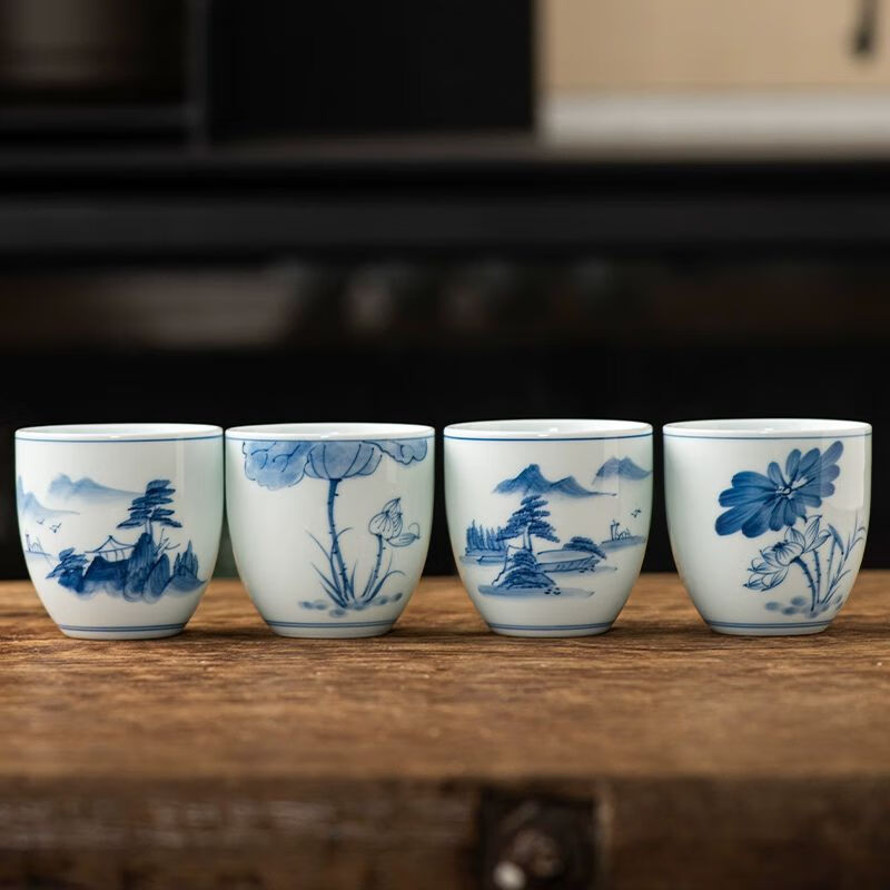 厨具  > 茶具  > 茶杯  >  松韵清  >  松韵清中式复古烈酒杯家用陶瓷白酒杯三两酒盅古风果酒杯小酒盏 单个蓝彩荷韵 /个