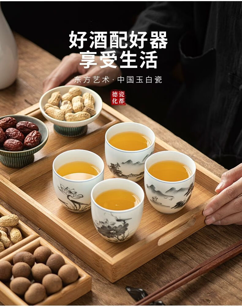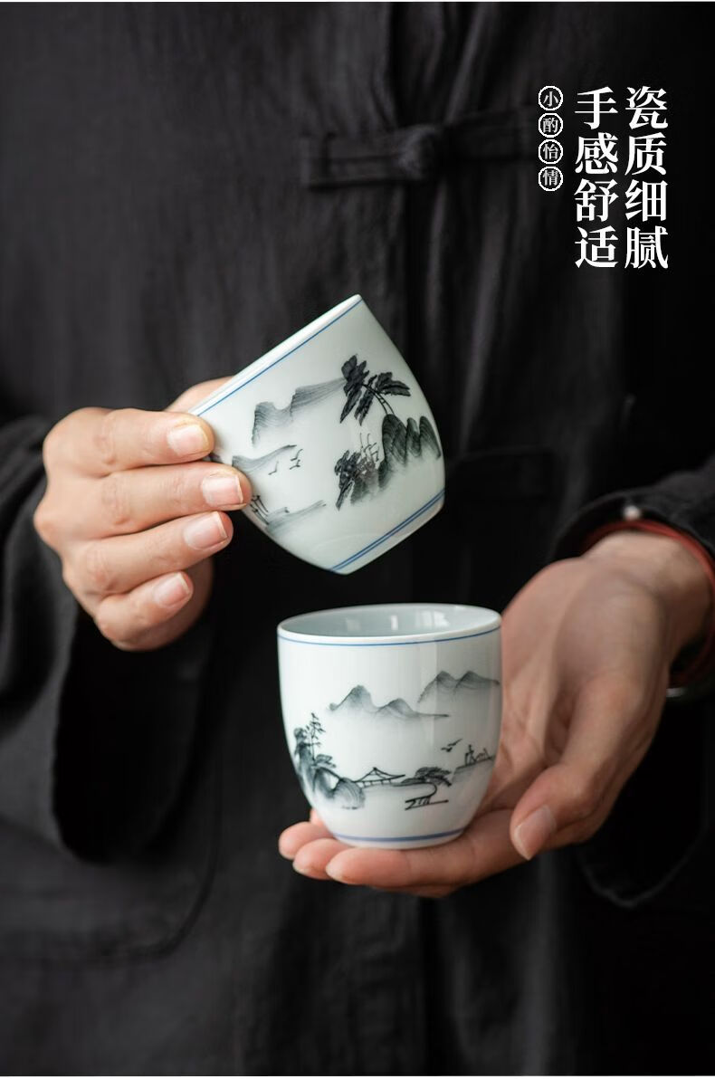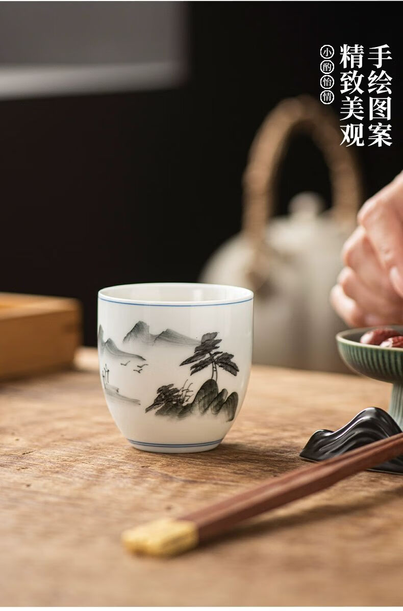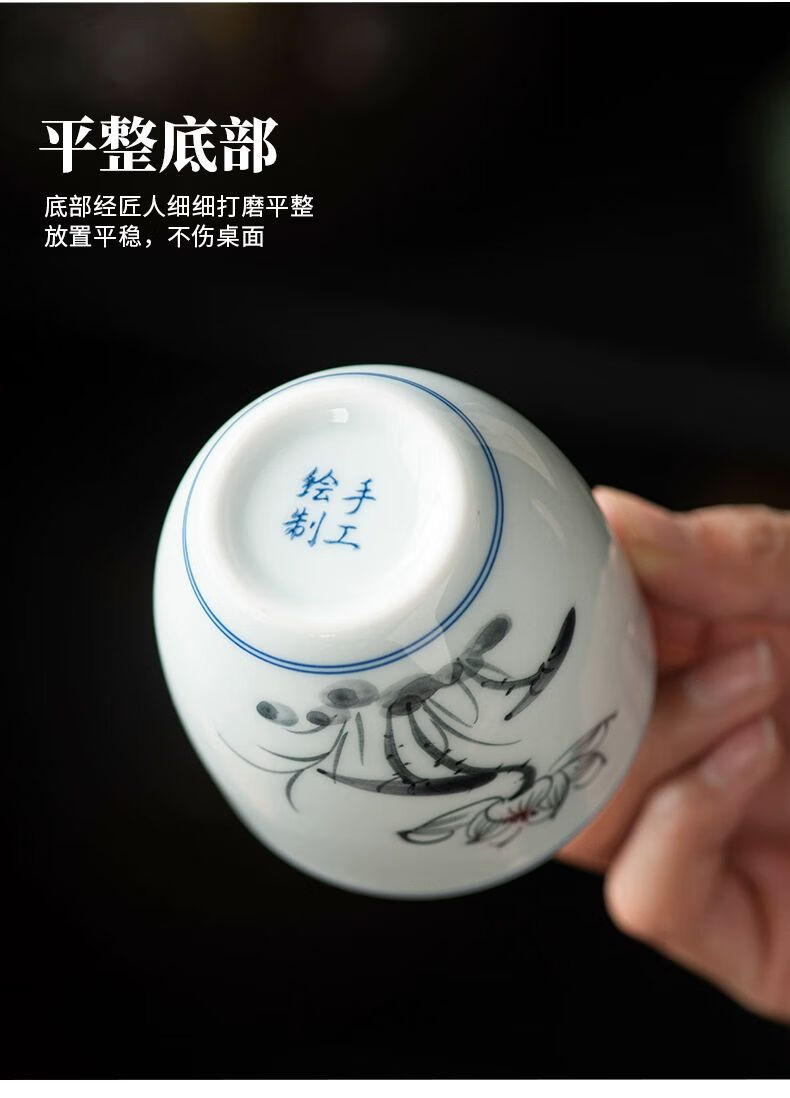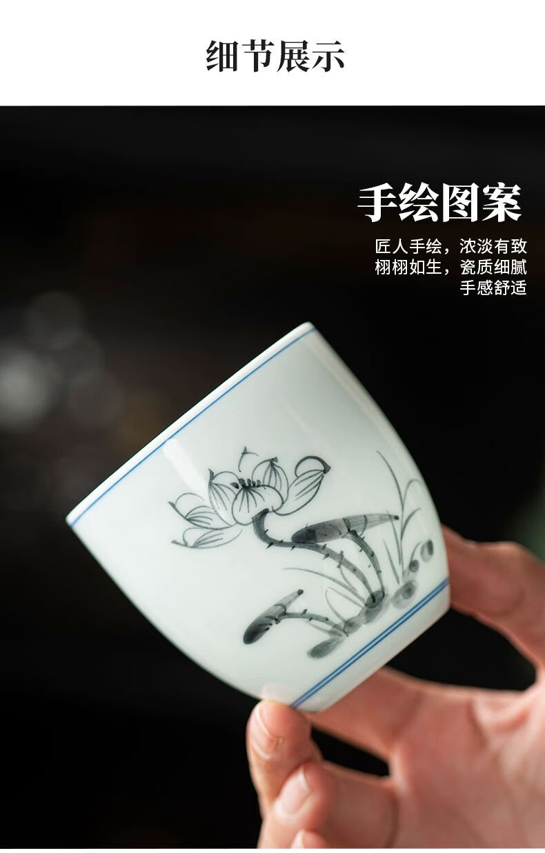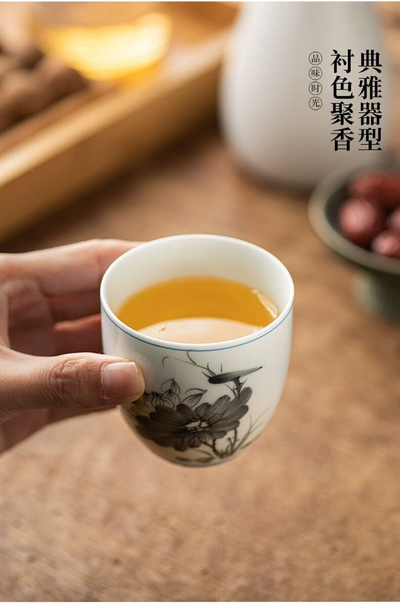 • 商品名称:松韵清中式复古烈酒杯家用陶瓷白酒杯三两酒盅古风果酒杯小酒盏 单个蓝彩荷韵 /个