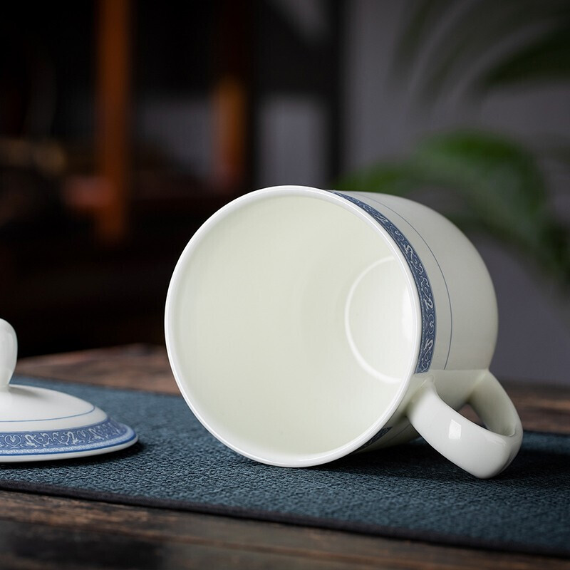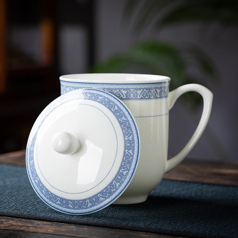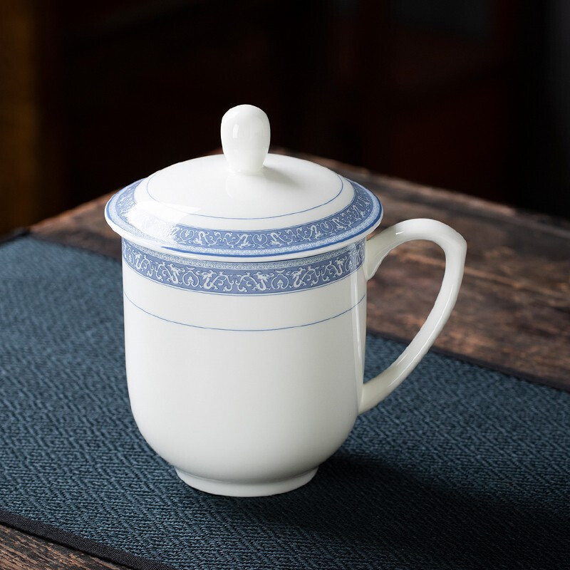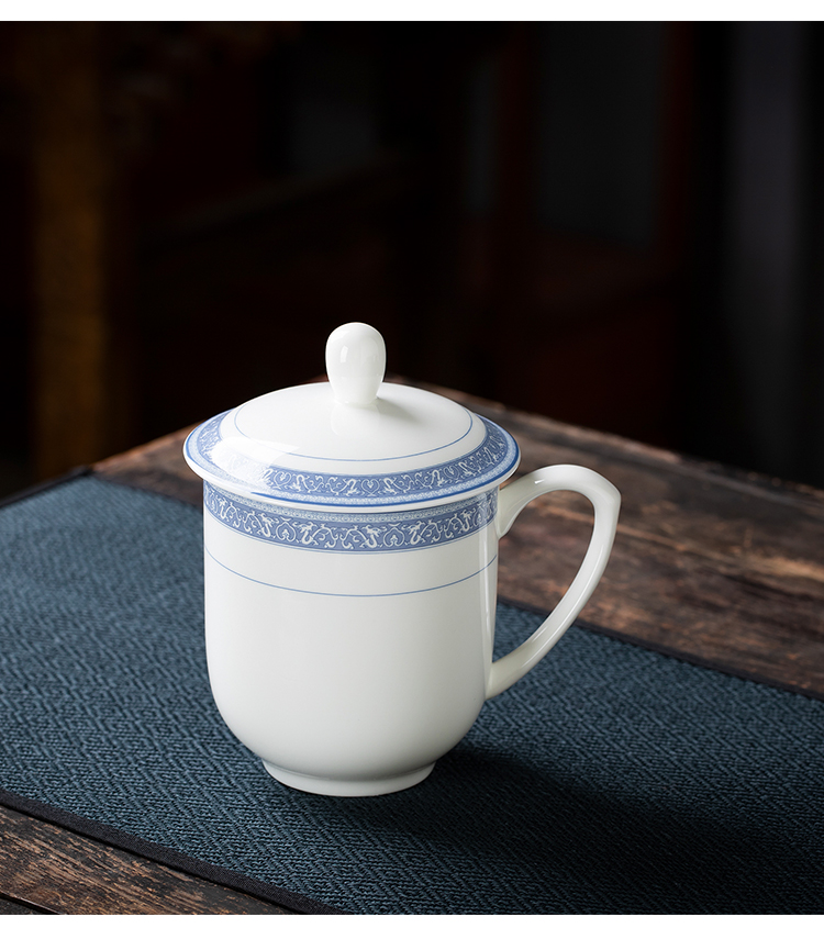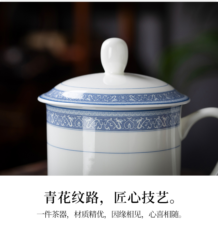 陶相惠 茶杯 陶瓷带盖办公杯骨瓷盖杯会议杯青花家用水杯酒店开会杯子 青花会议杯-团龙/个