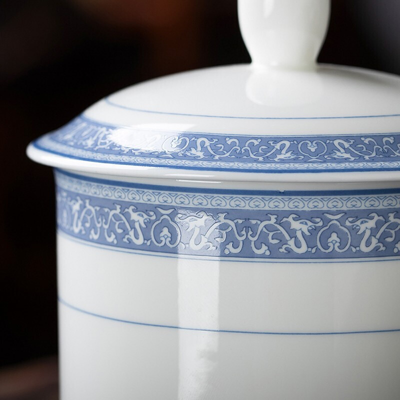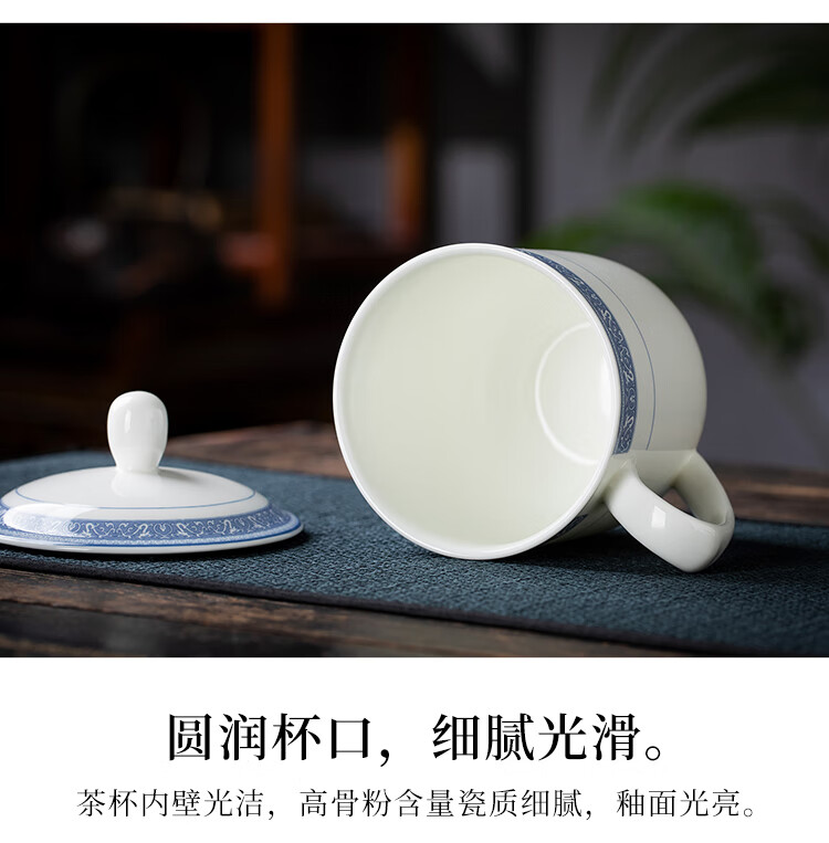 厨具  > 茶具  > 茶杯  >  陶相惠  >  陶相惠 茶杯 陶瓷带盖办公杯骨瓷盖杯会议杯青花家用水杯酒店开会杯子 青花会议杯-团龙/个