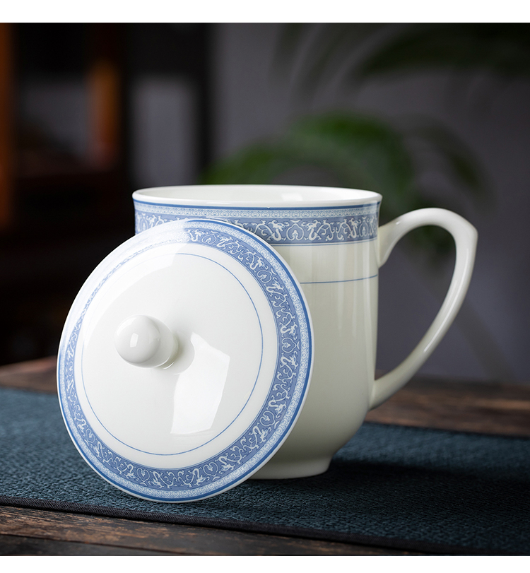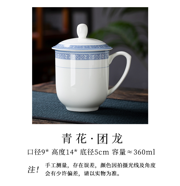 商品名称: 陶相惠 茶杯 陶瓷带盖办公杯骨瓷盖杯会议杯青花家用水杯酒店开会杯子 青花会议杯-团龙/个