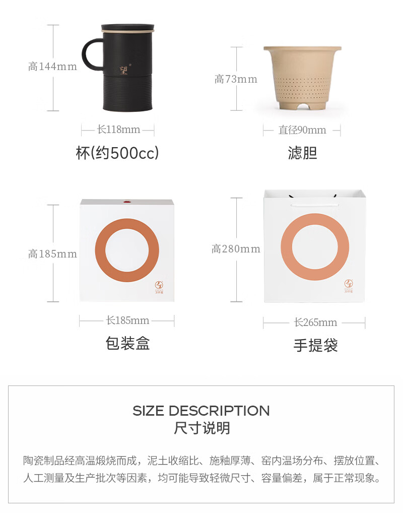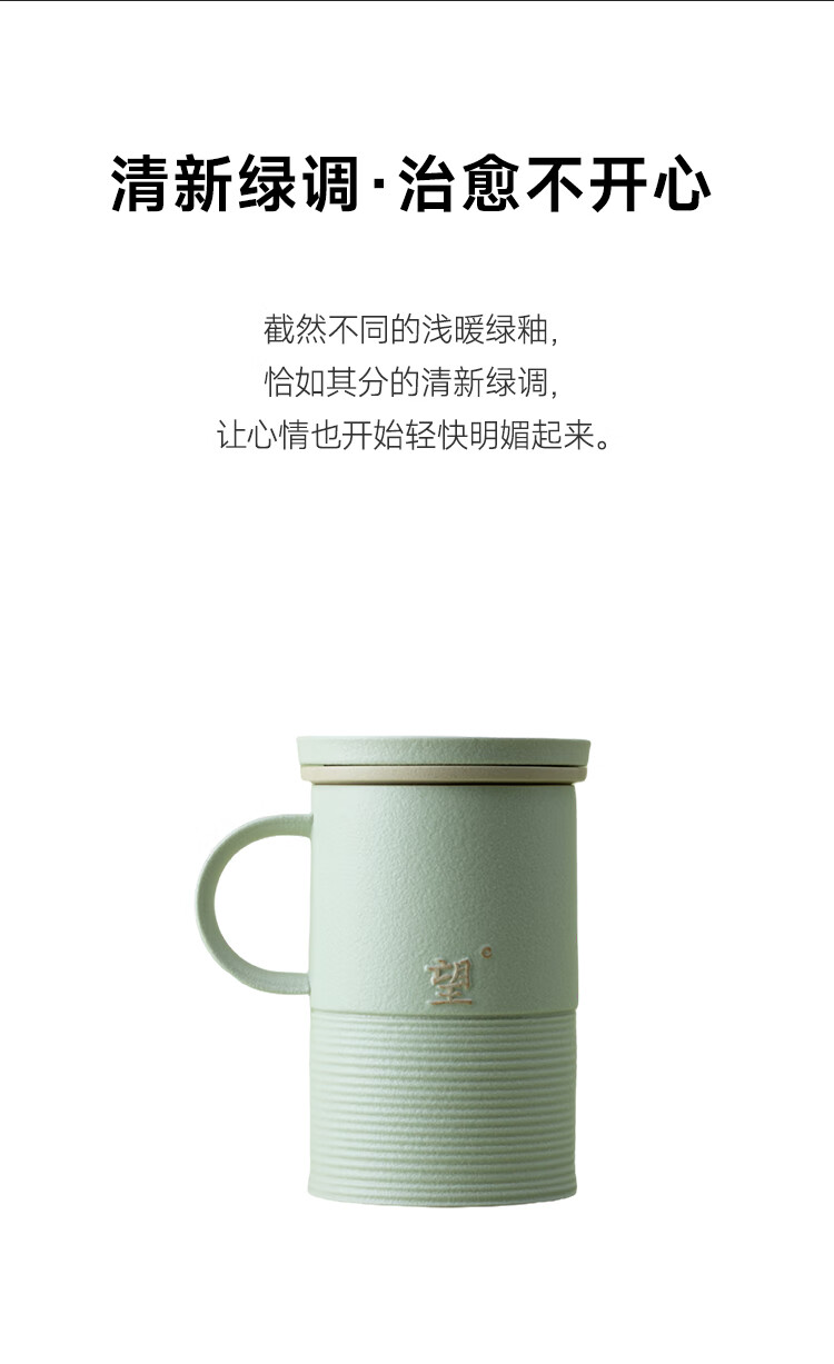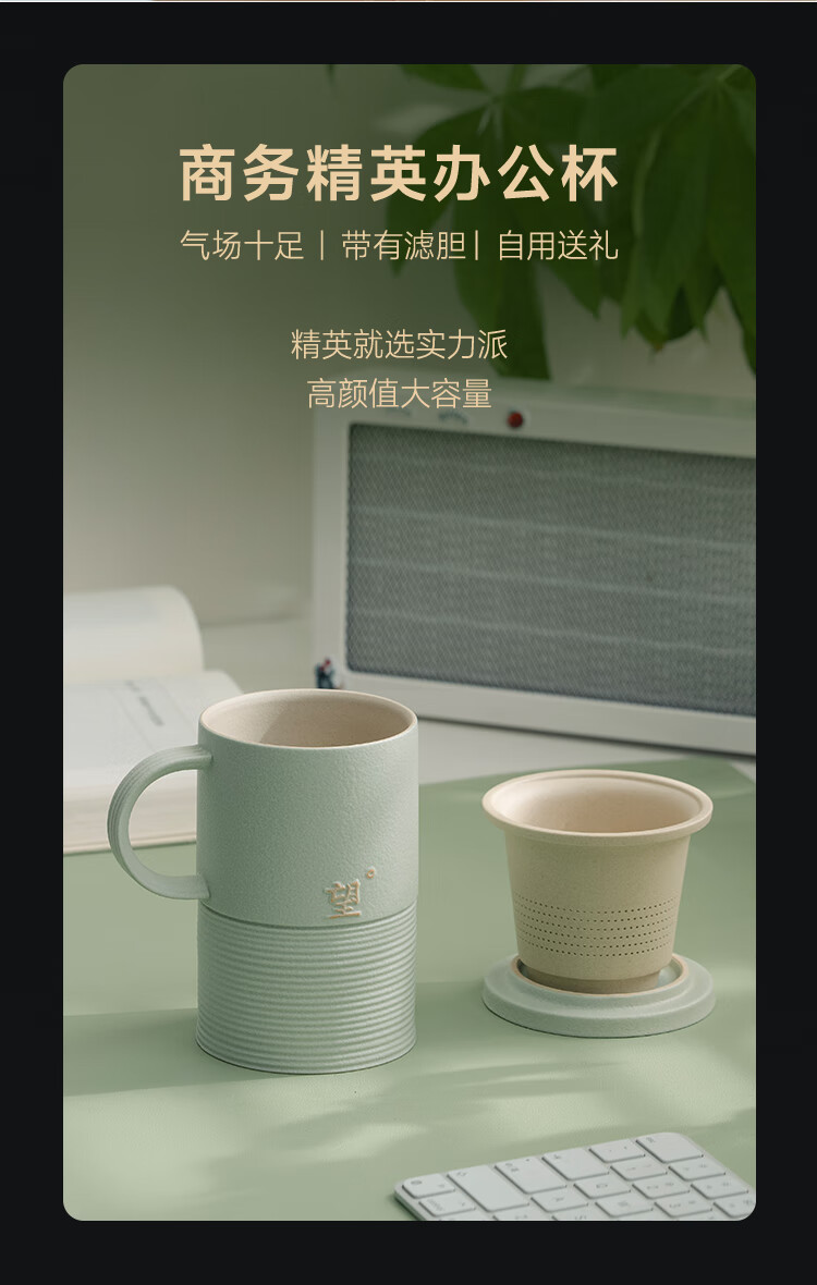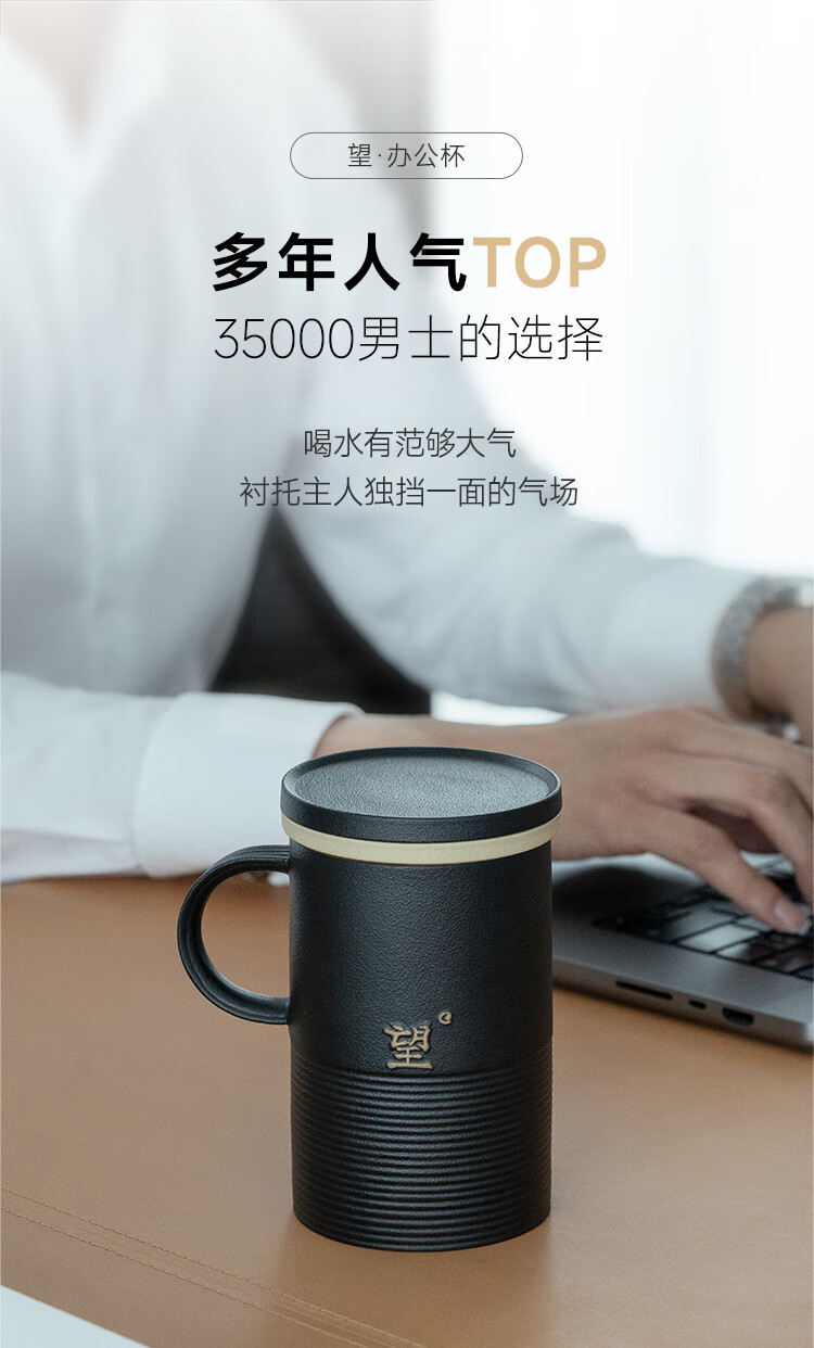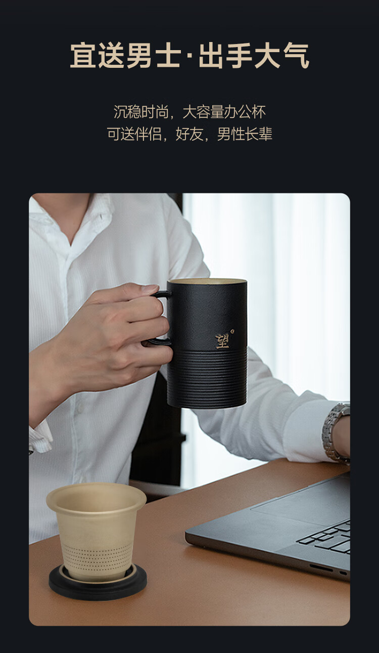 万仟堂陶瓷茶杯 高档办公杯带盖创意水杯送男友茶水分离杯水杯茶杯 望杯 陶瓷茶杯/套