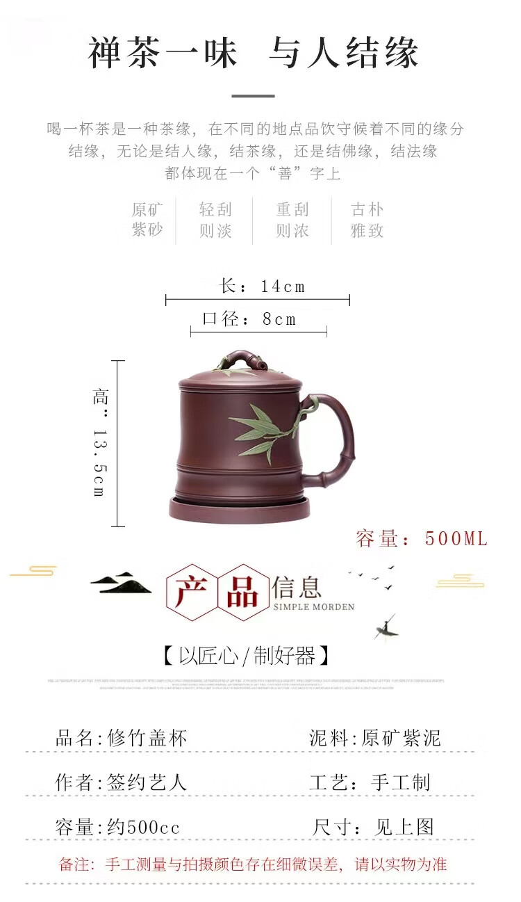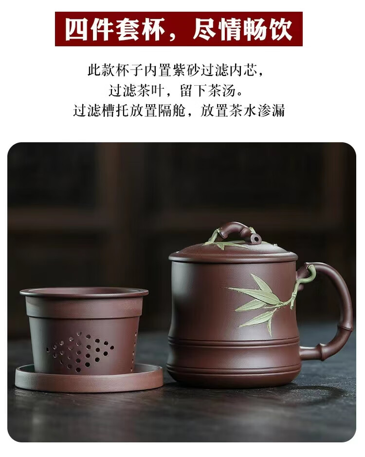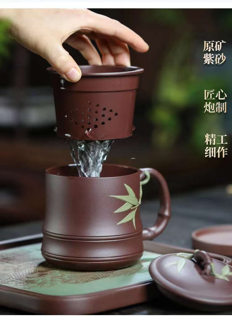 • 商品名称:灏库紫砂杯茶水分离杯泡茶杯子办公杯生日礼物送父亲爸爸男士老公长辈 210/套