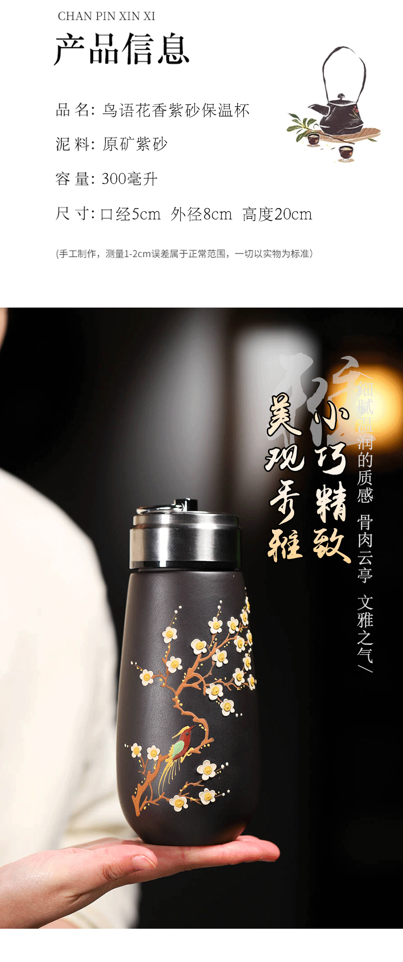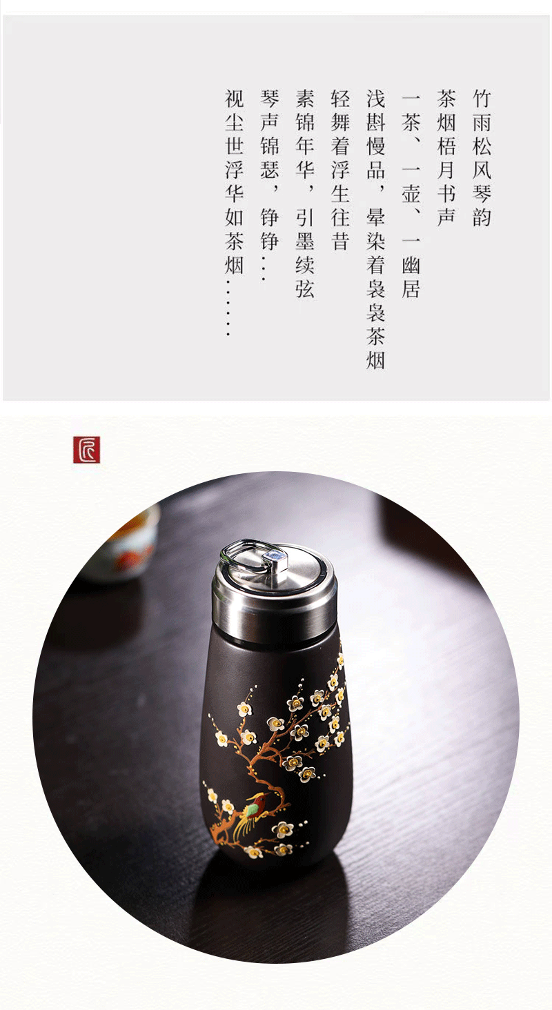• 商品名称:一杯江湖紫砂茶杯 温变保温杯 300ml 喜上眉梢 可定制刻字 YBHT1208 YBHT1208/个