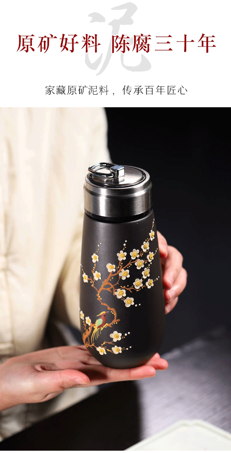 商品名称: 一杯江湖紫砂茶杯 温变保温杯 300ml 喜上眉梢 可定制刻字 YBHT1208 YBHT1208/个