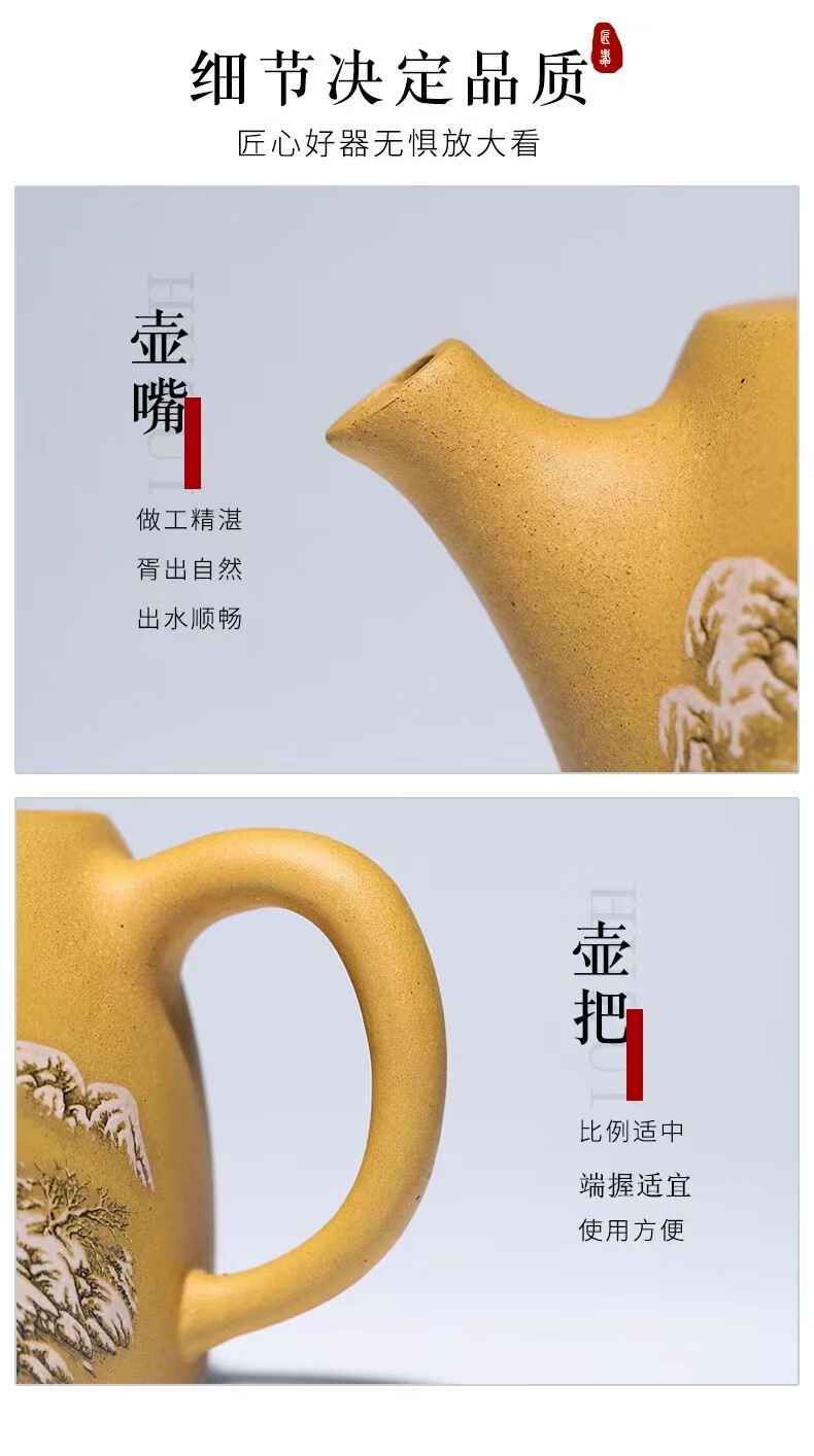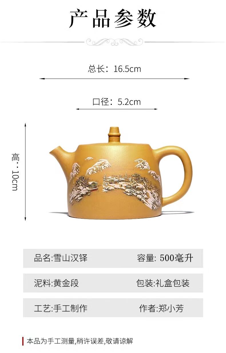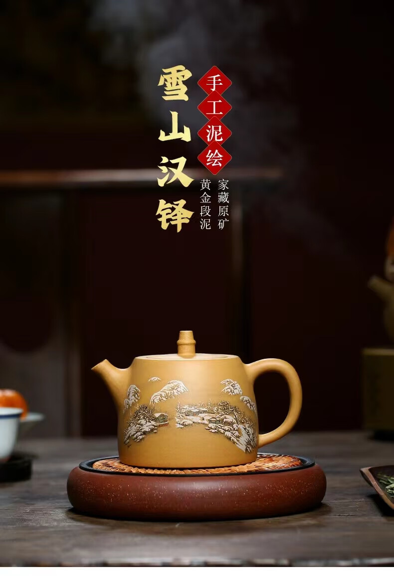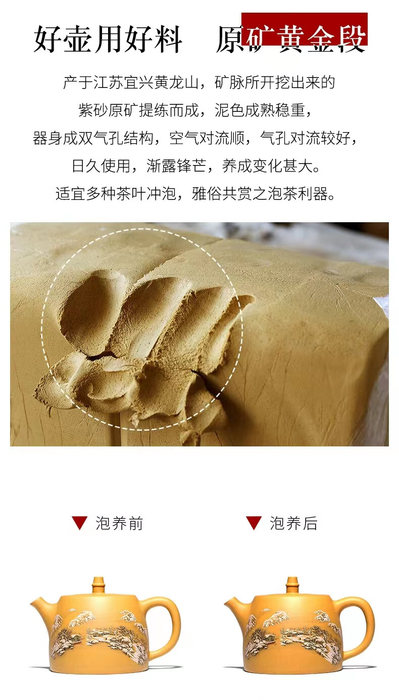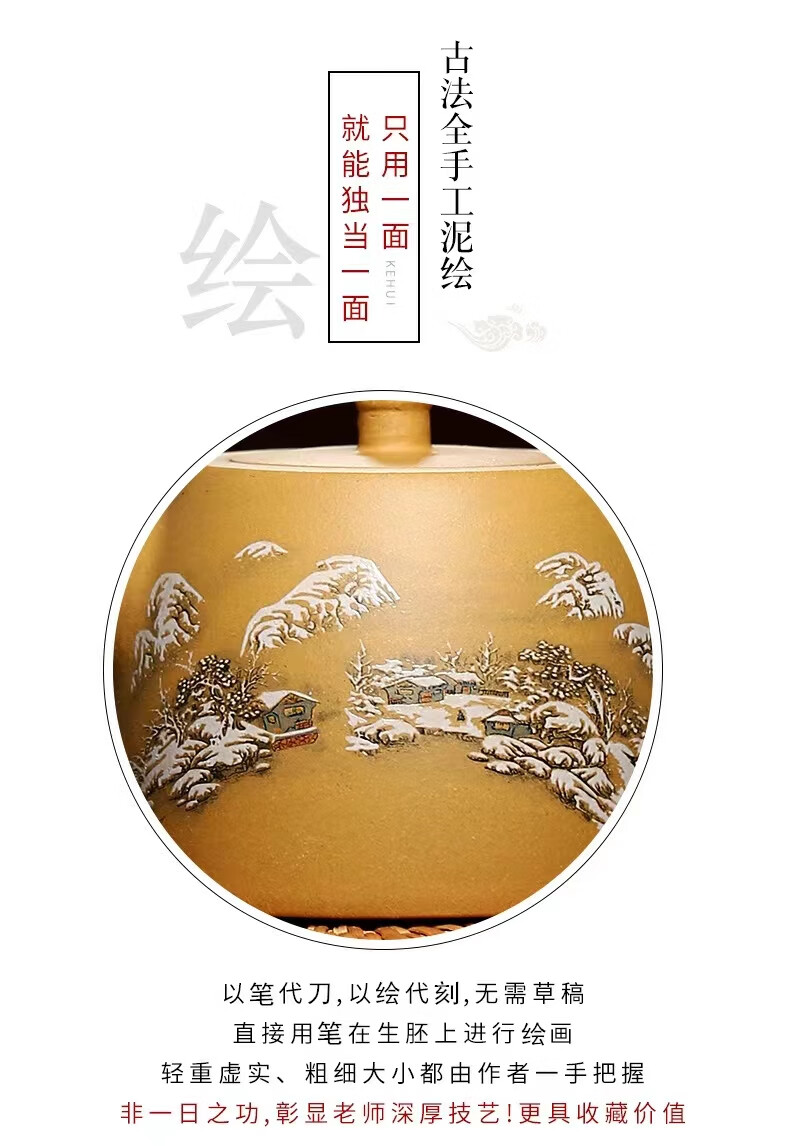 • 商品名称:灏库紫砂壶泡茶壶生日礼物男宜兴原矿黄金段全手工彩绘500毫升大容量 500/套