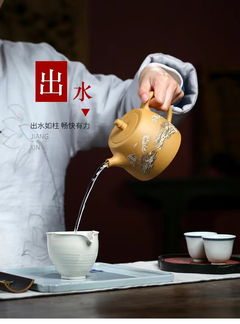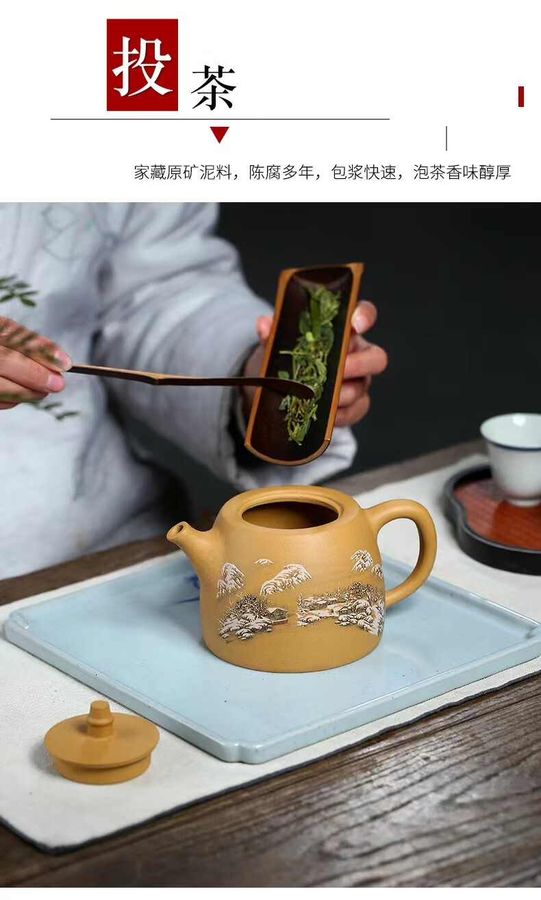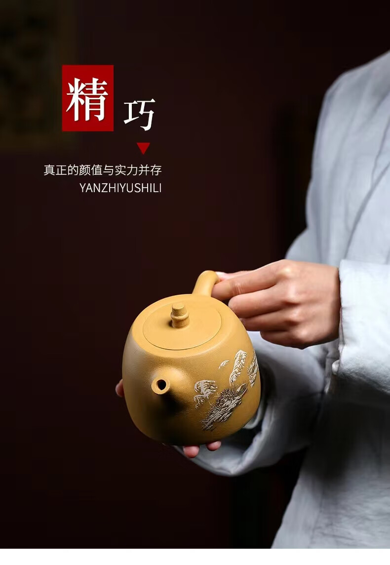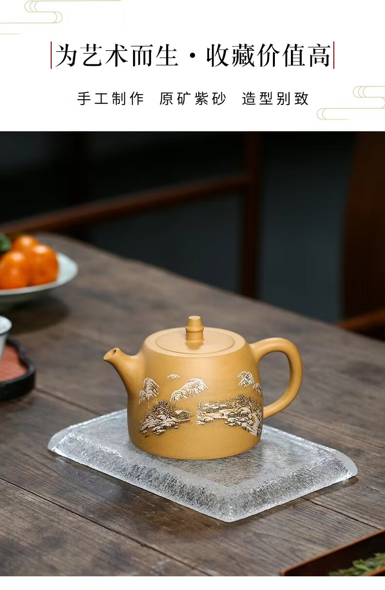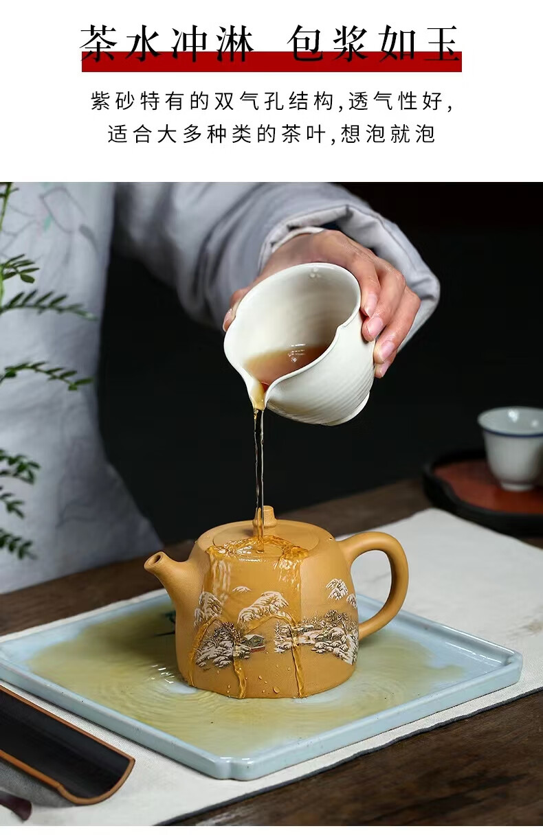 • 商品名称:灏库紫砂壶泡茶壶生日礼物男宜兴原矿黄金段全手工彩绘500毫升大容量 500/套