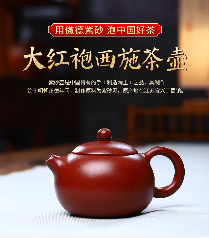 • 商品名称:满庭花宜兴纯手工紫砂壶茶具批发红袍西施壶家用煮茶泡茶壶礼盒定制 3246326/套