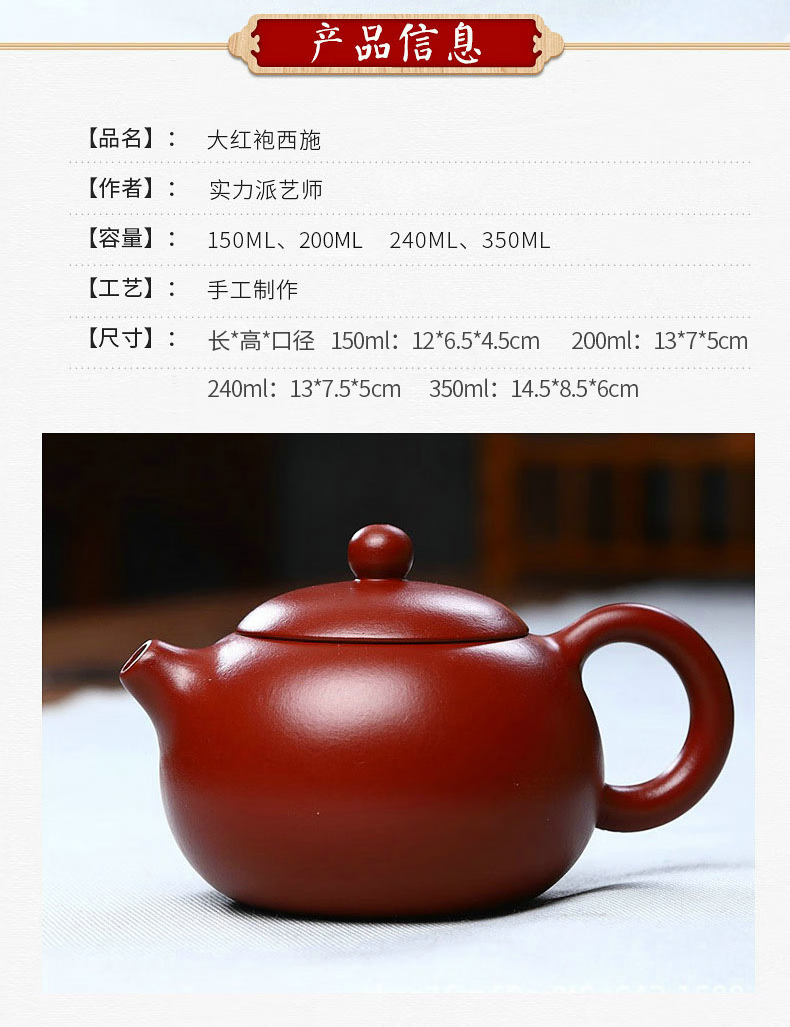 商品名称: 满庭花宜兴纯手工紫砂壶茶具批发红袍西施壶家用煮茶泡茶壶礼盒定制 3246326/套