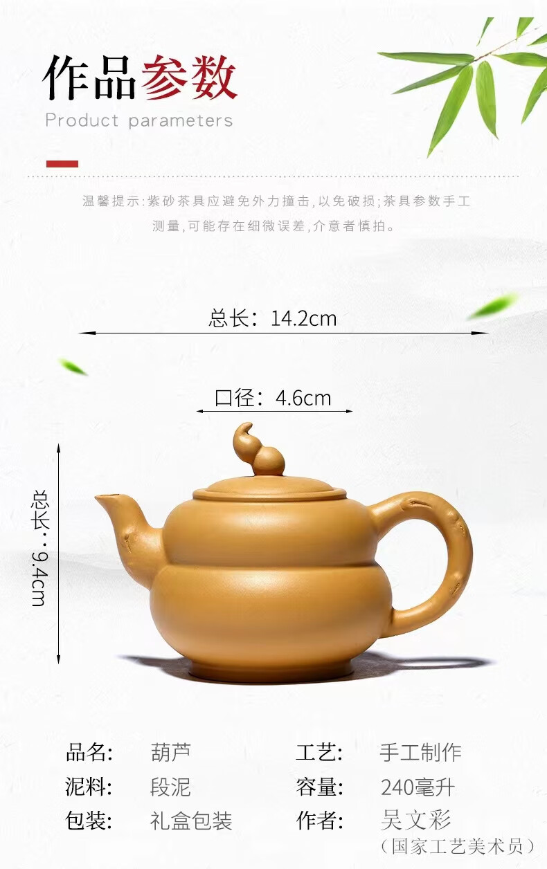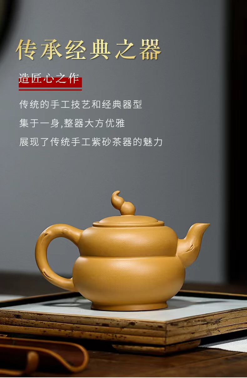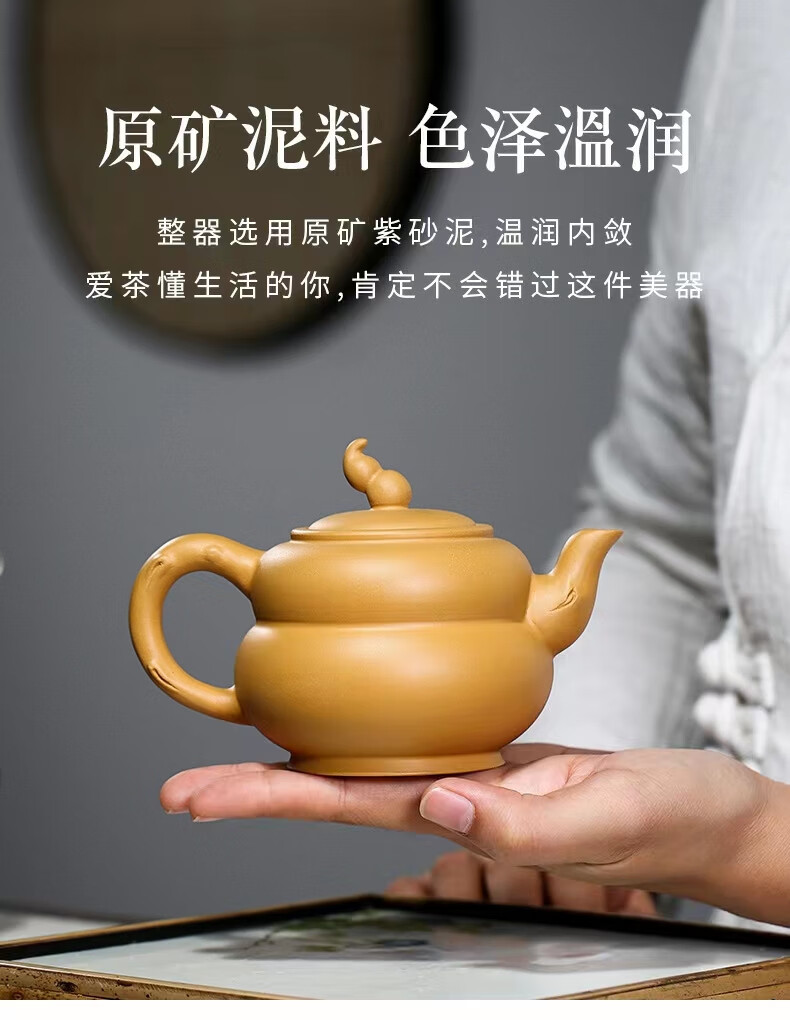 • 商品名称:灏库紫砂壶茶壶葫芦壶宜兴原矿黄金段手工生日礼物送爸爸男士伴手礼 237/套