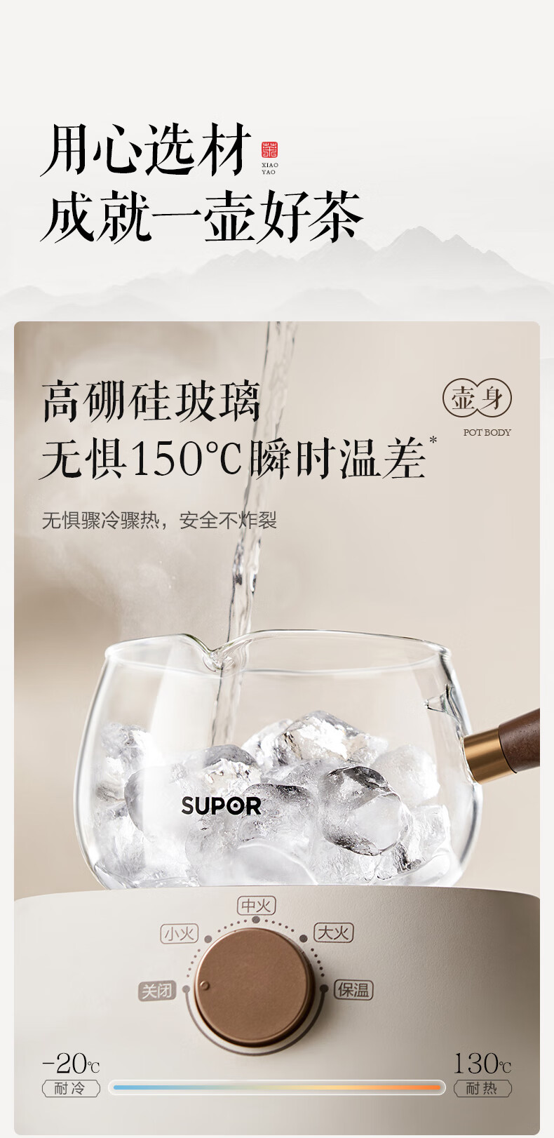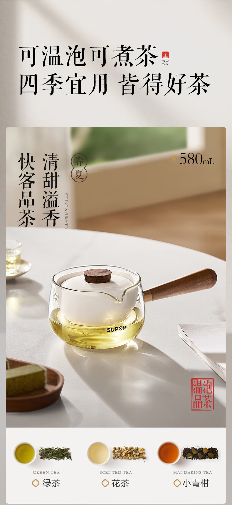 苏泊尔(SUPOR) 耐热玻璃旋转侧把壶泡茶壶烧水壶 .720mL KCG70BJ10/支
