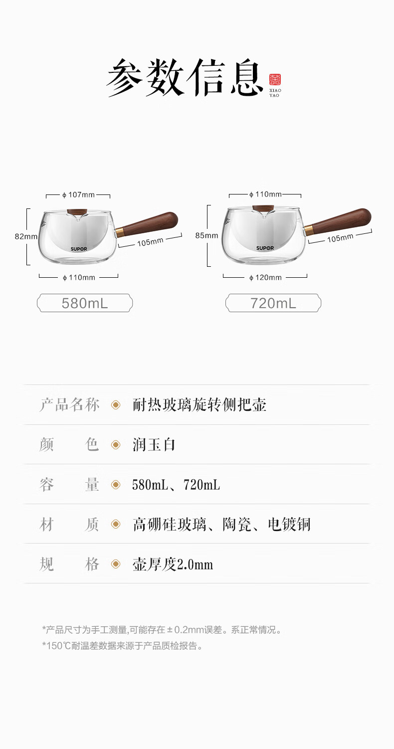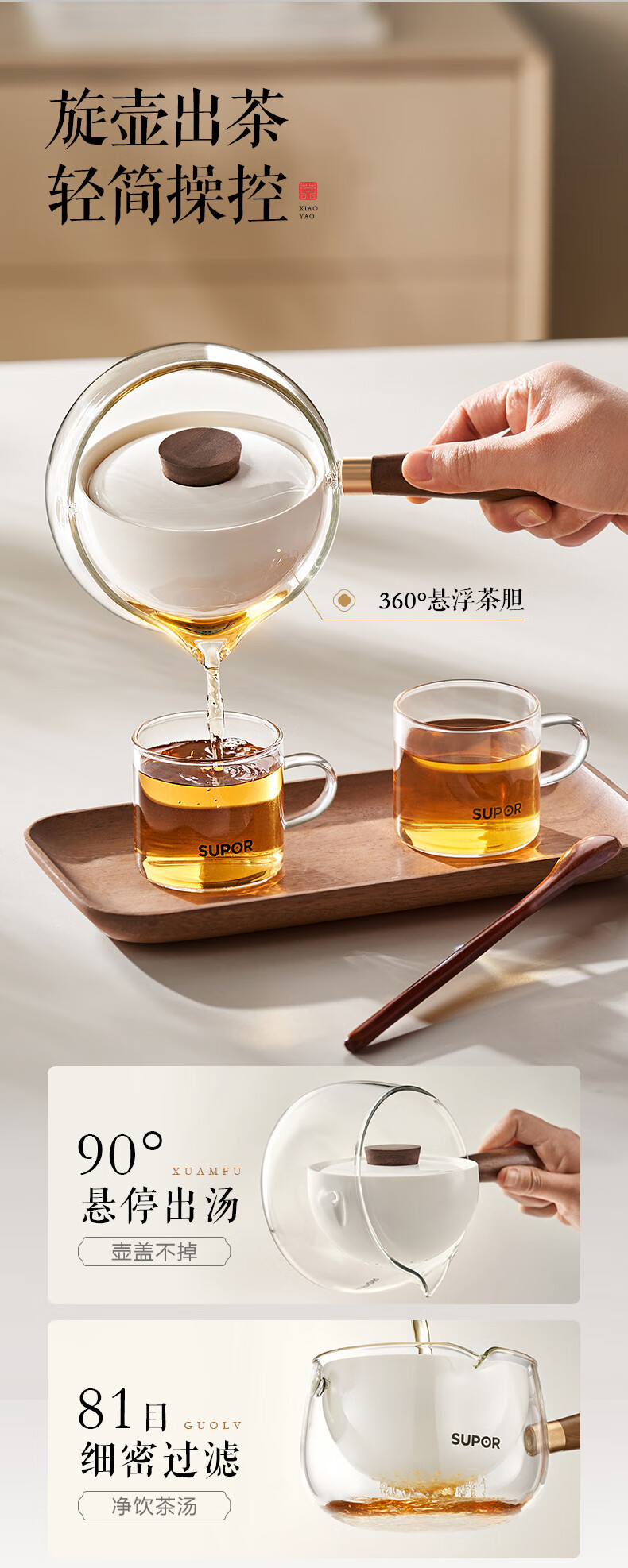 厨具  > 茶具  > 茶壶  >  苏泊尔/SUPOR  >  苏泊尔(SUPOR) 耐热玻璃旋转侧把壶泡茶壶烧水壶 .720mL KCG70BJ10/支