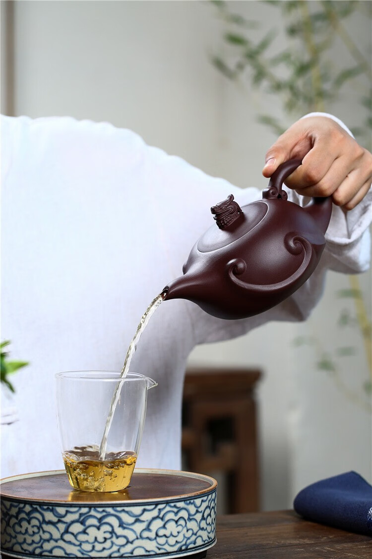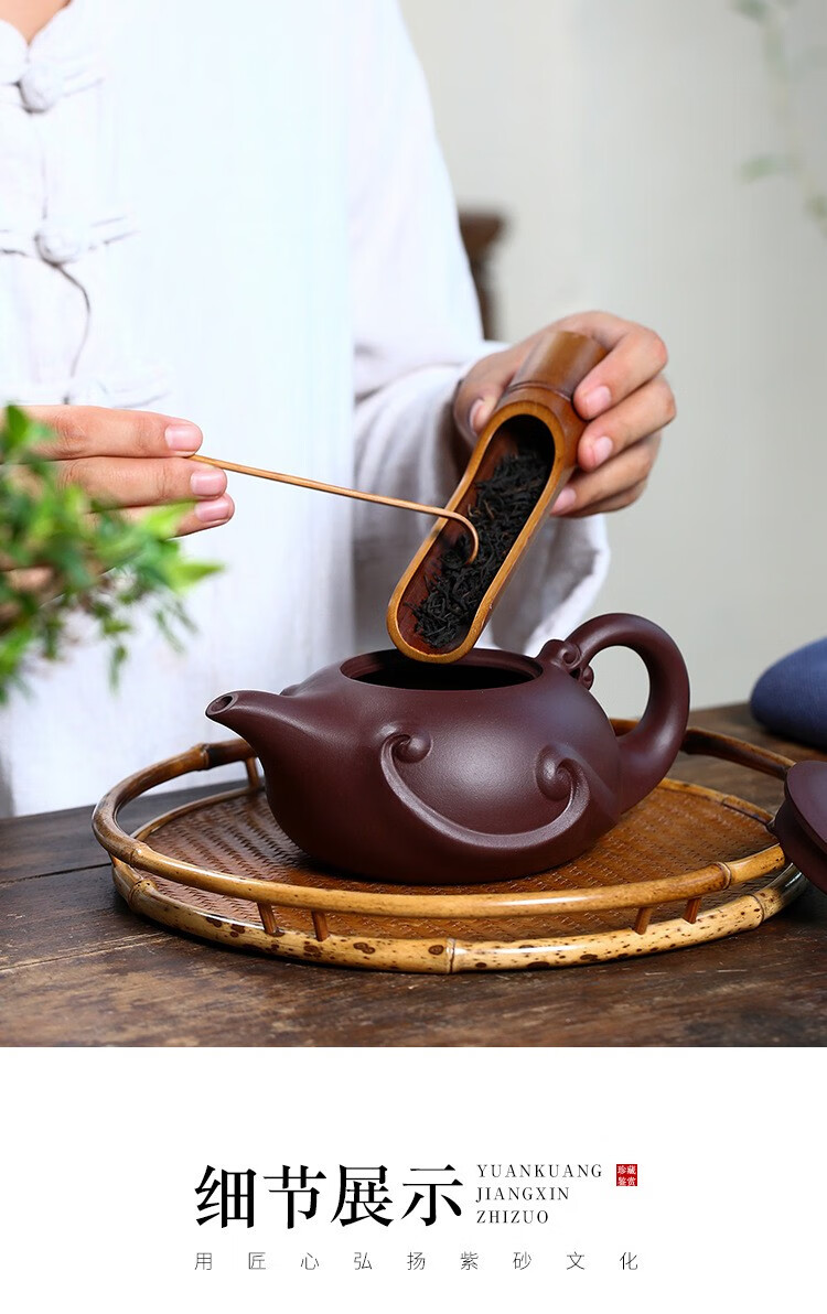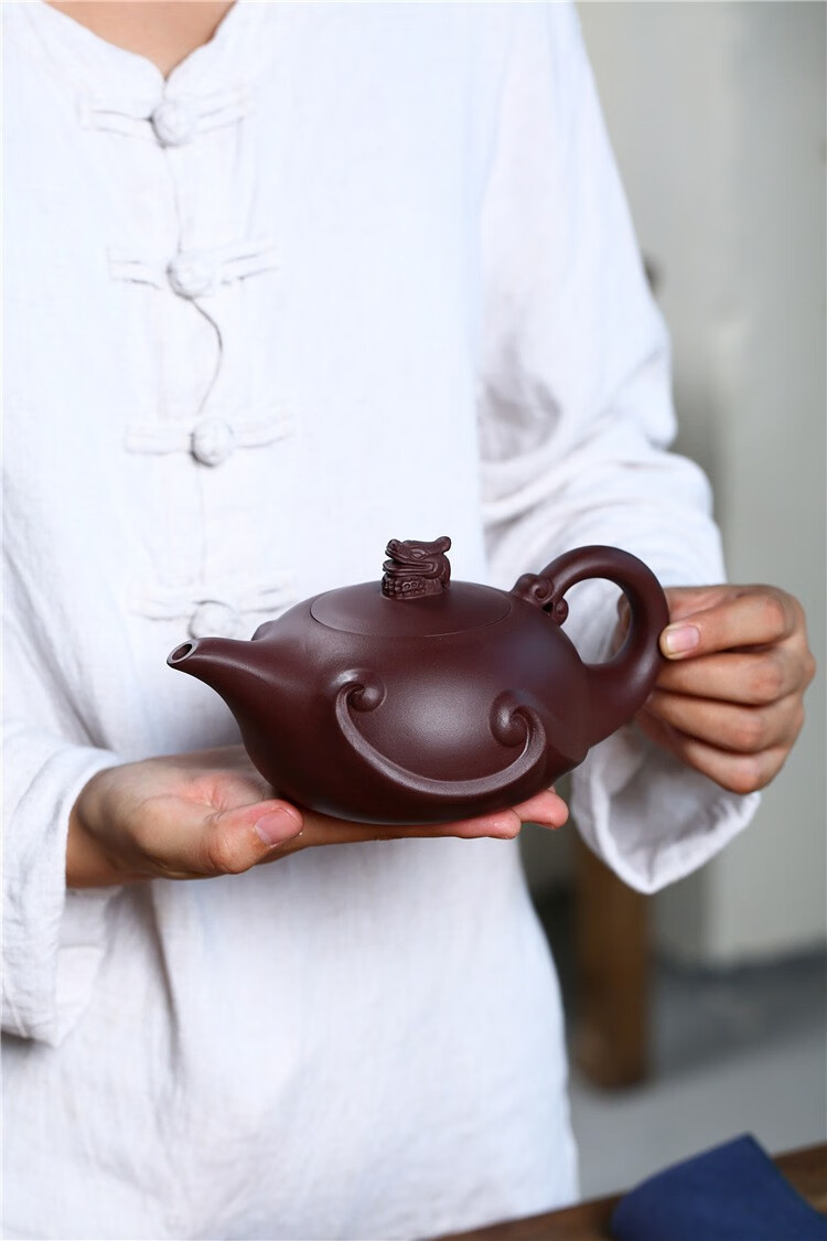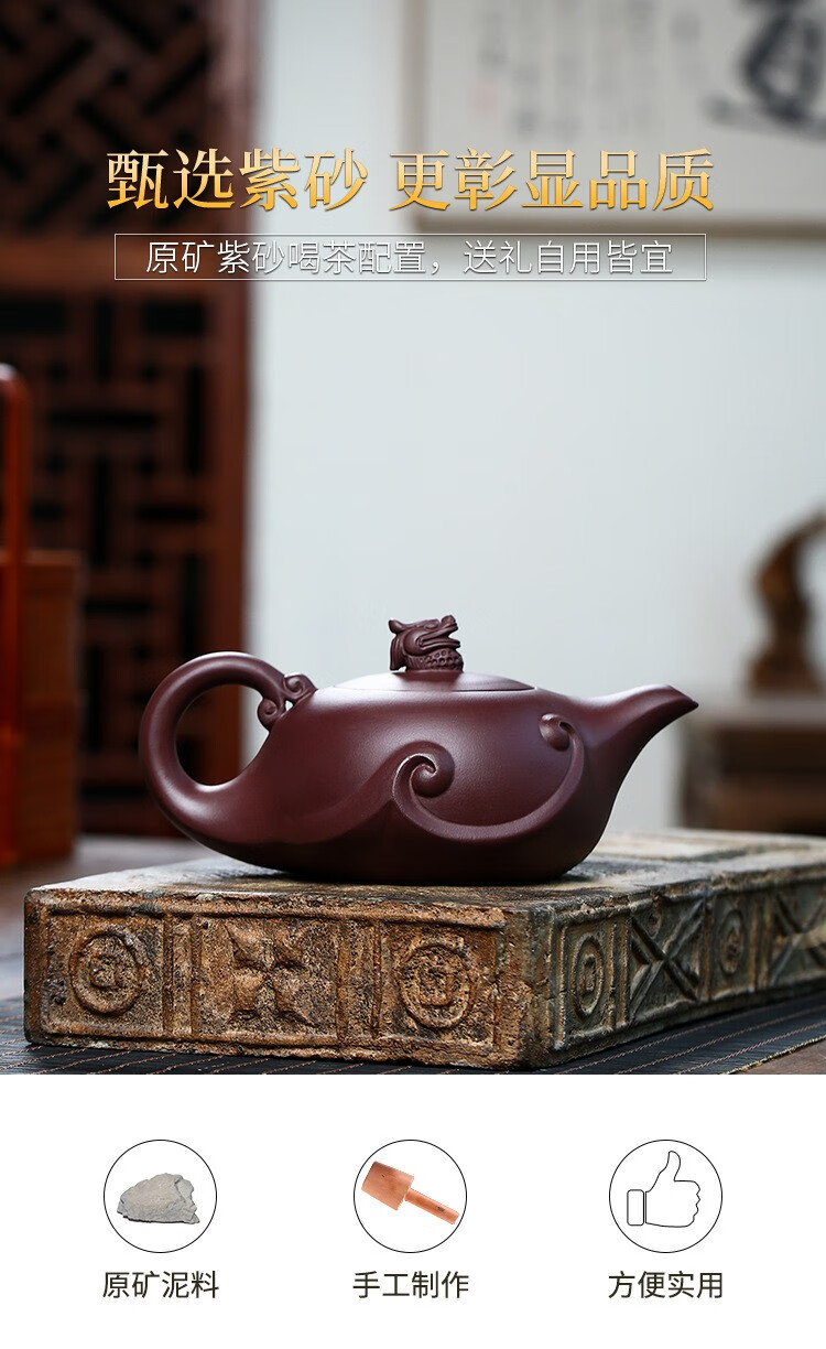 • 商品名称:满庭花宜兴名家原矿陈腐紫泥紫砂壶纯手工龙瀛泡茶壶大容量420毫升LOGO 08522/套