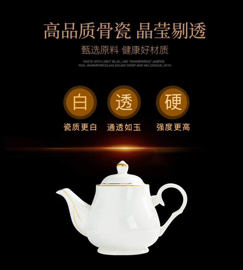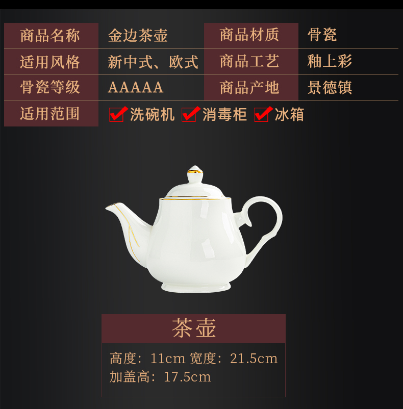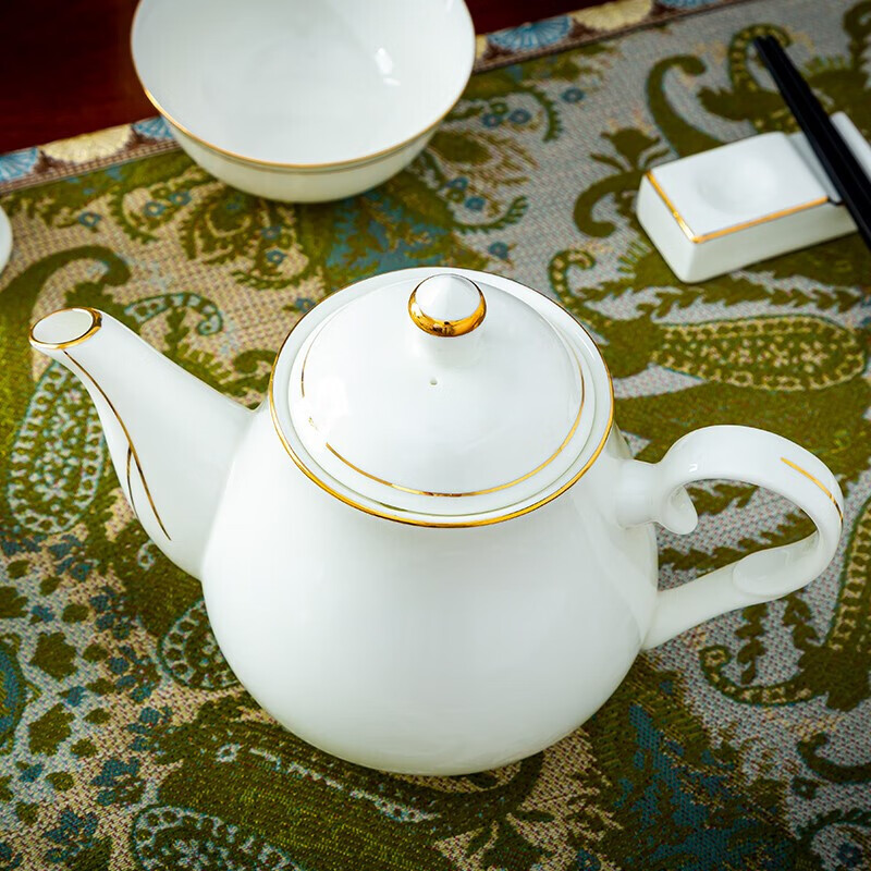 • 商品名称:陶相惠景德镇陶瓷办公茶壶大容量可装1升水公司泡茶壶家用水壶定制logo 金边茶壶/个