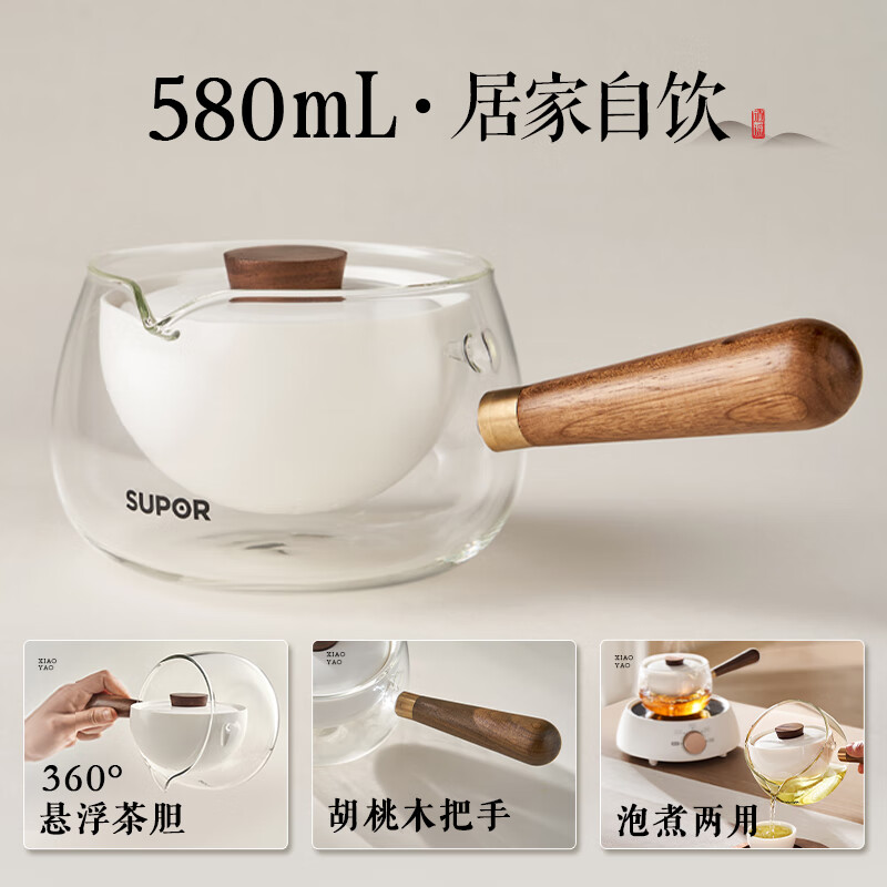 苏泊尔(SUPOR) 耐热玻璃旋转侧把壶泡茶壶烧水壶 .580mL KCG70BJ10/支