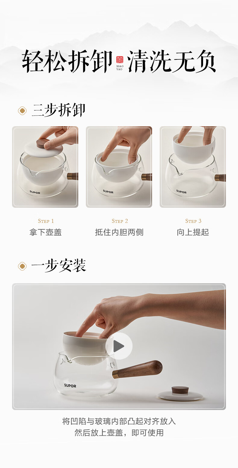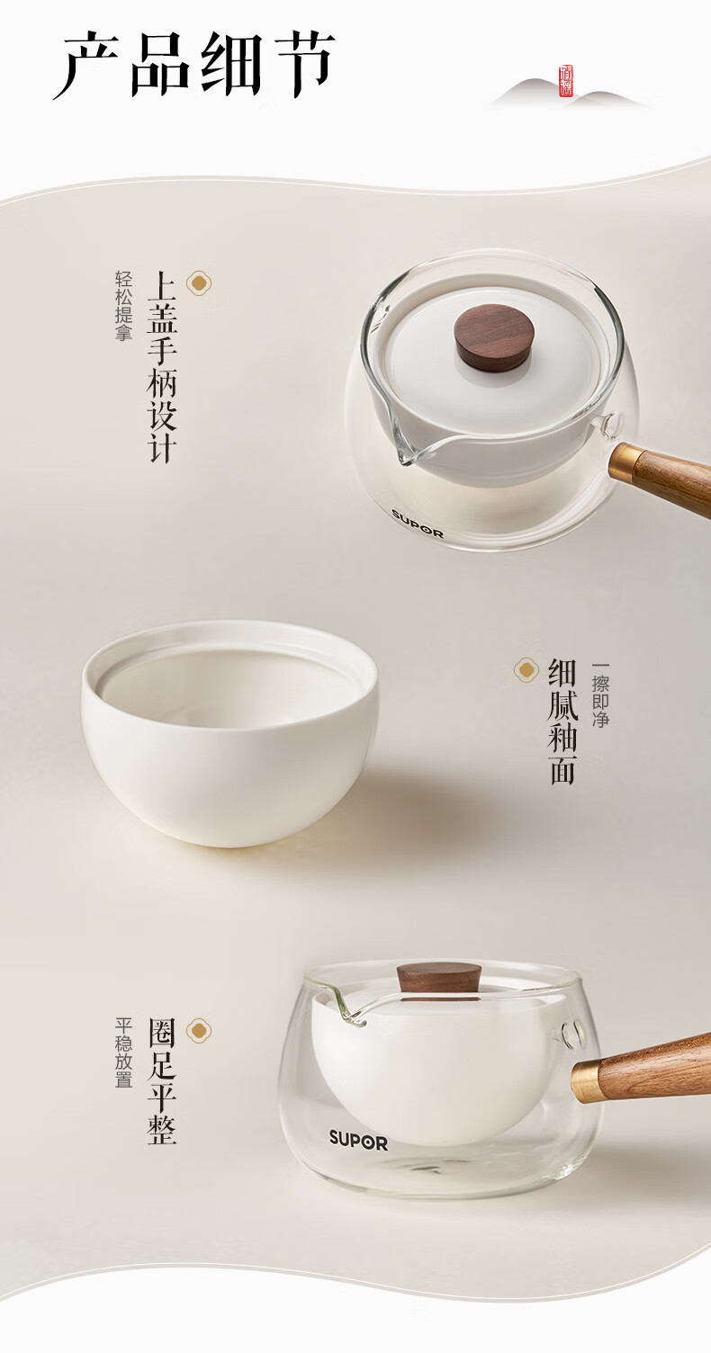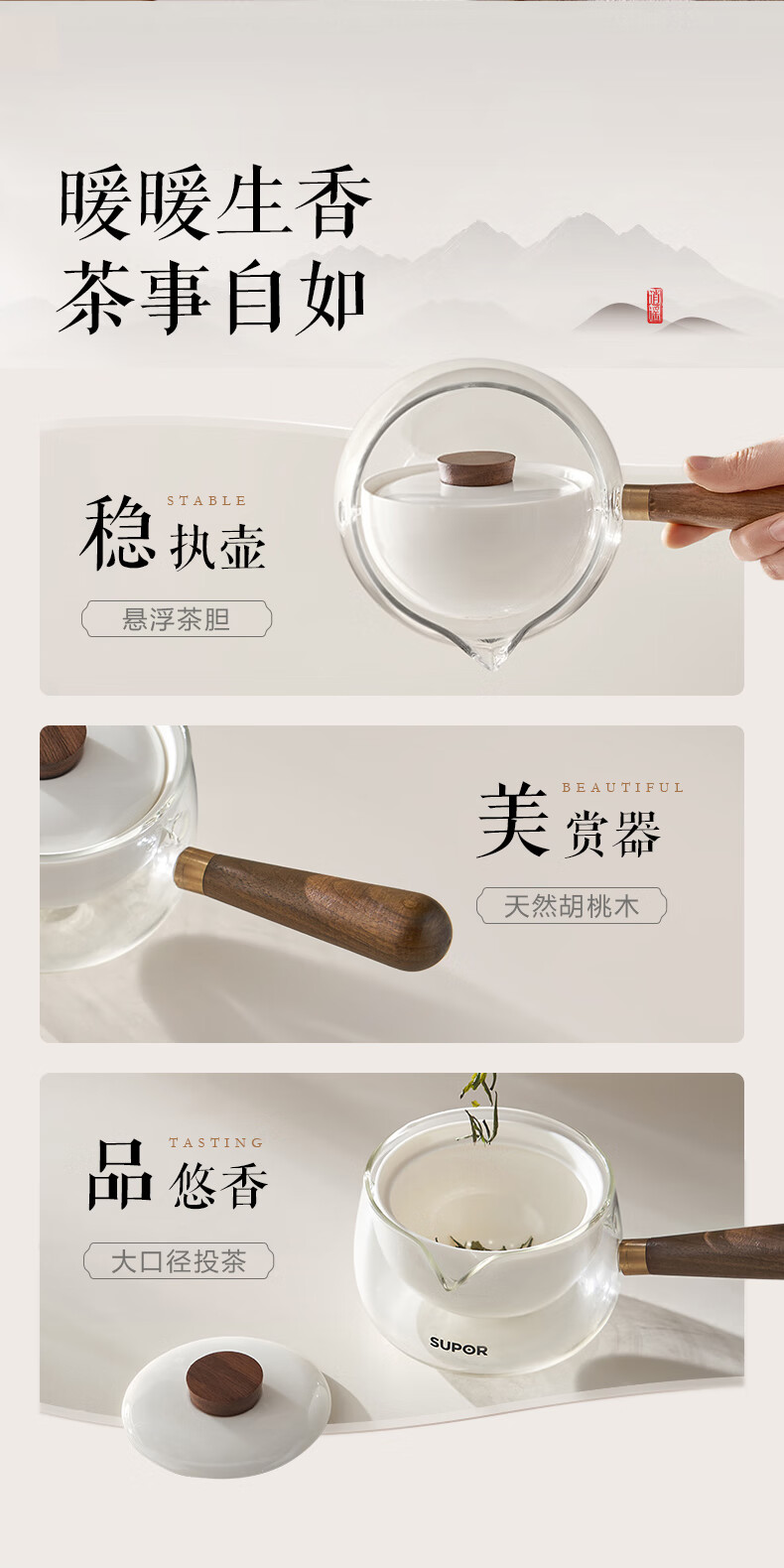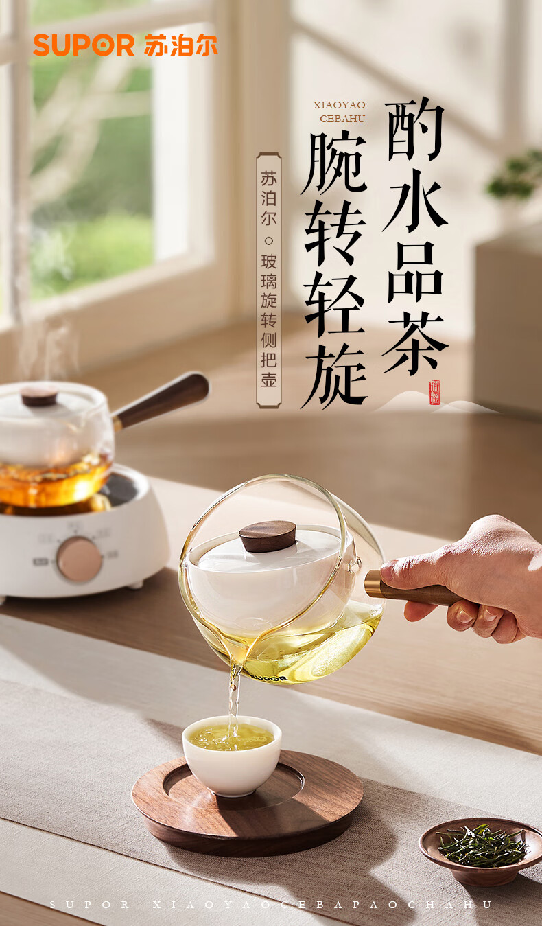 厨具  > 茶具  > 茶壶  >  苏泊尔/SUPOR  >  苏泊尔(SUPOR) 耐热玻璃旋转侧把壶泡茶壶烧水壶 .580mL KCG70BJ10/支