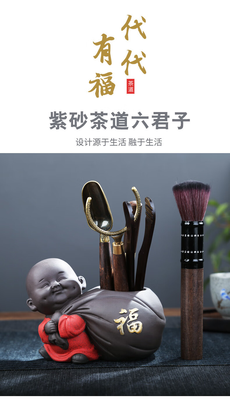 • 商品名称:茶循 茶道六君子套装茶具配件大全茶台泡茶工具 代代有福六君子-红色 主产品/件