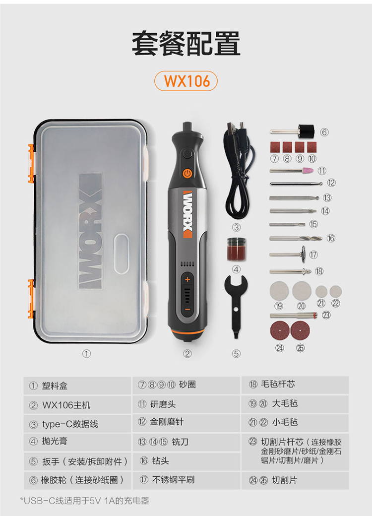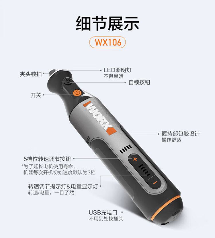 五金/工具  > 电动工具  > 电磨  >  威克士/WORX  >  威克士8V电磨机WX106小型锂电手持切割打磨抛光神器雕刻打孔器电动工具 WX106/台