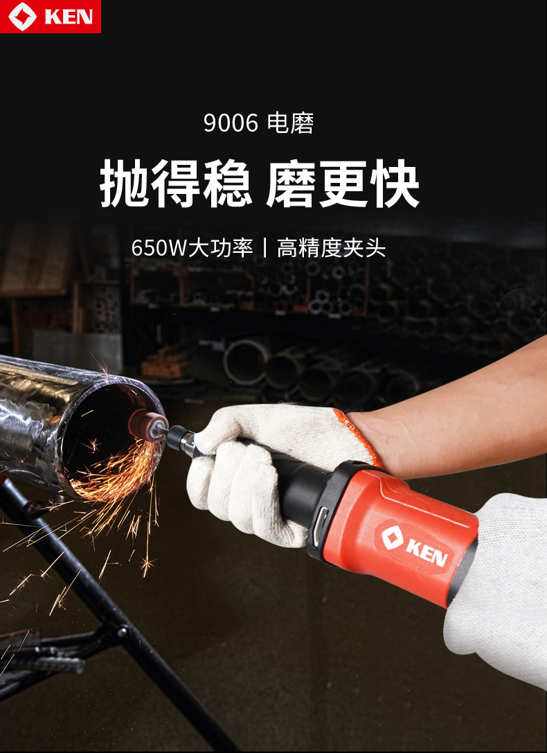 锐奇(KEN)电磨机9006直磨机打磨机650W6mm夹头内孔抛光机雕刻机电动工具 9006/台
