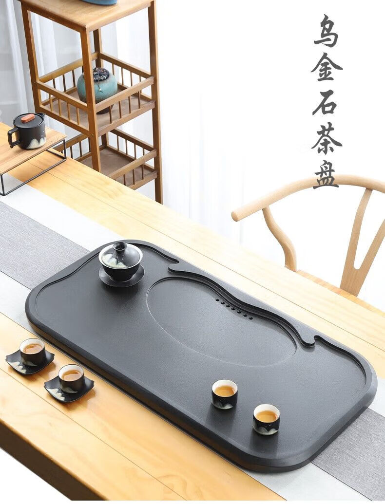 • 商品名称:优菡舍天然乌金石茶盘家用茶台中式客厅高档功夫一体石材茶托盘 平步青云单茶盘(70-40-3cm)/个