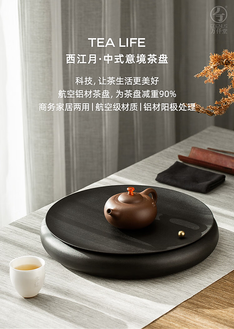 • 商品名称:万仟堂(Edenus)茶盘 航空铝材轻便储水茶盘 功夫干泡茶托茶台 西江月茶盘 专享 茶盘/个
