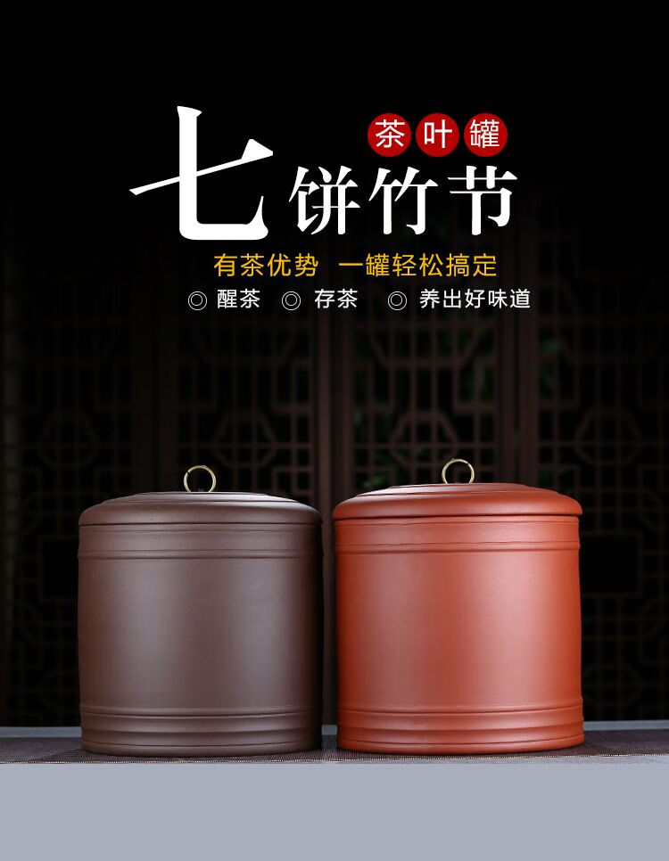 • 商品名称:松韵清宜兴紫砂茶叶罐密封陶瓷存茶罐普洱七子饼储茶罐密封罐茶盒 七饼罐(春兰款) 7饼/个