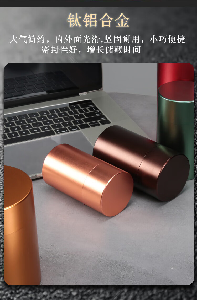 • 商品名称:希耀 钛铝合金茶叶罐金属罐子存茶密封罐 B款【75*130】mm|皓空银 B款【75*130】mm|皓空银/个