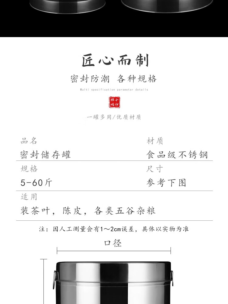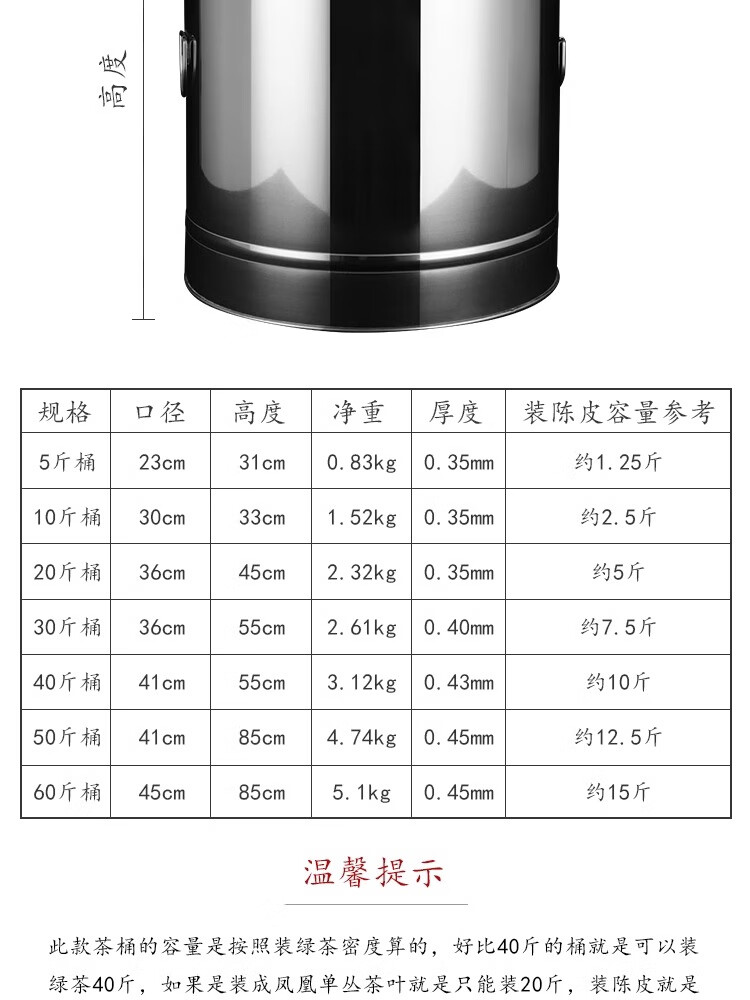 商品名称: 智星辉不锈钢陈皮桶茶叶桶大号铁桶加厚存放密封罐茶叶储存罐专用大容量 5斤/个
