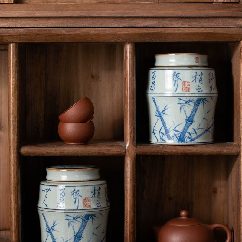 厨具  > 茶具  > 茶叶罐/茶饼盒  >  浅钰  >  浅钰茶叶罐陶瓷密封罐存茶罐中式复古家用普洱防潮空礼盒包装 桃花源记(哥窑开片)/个