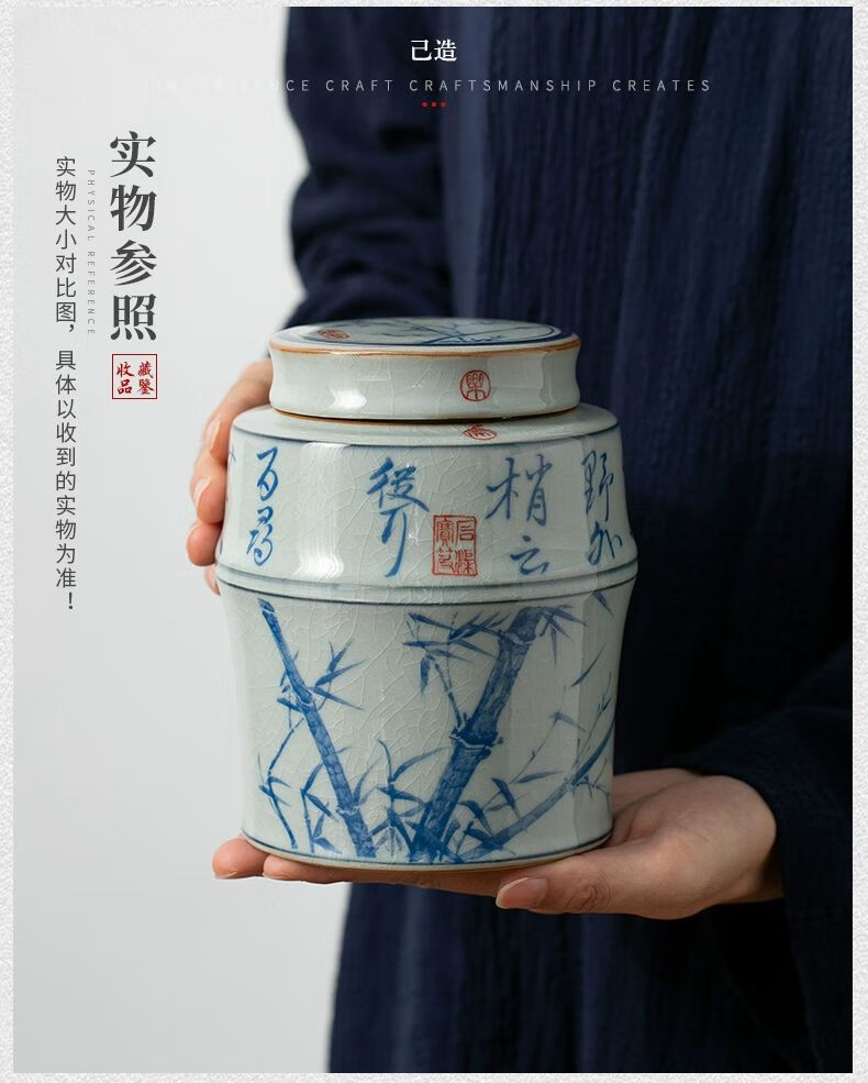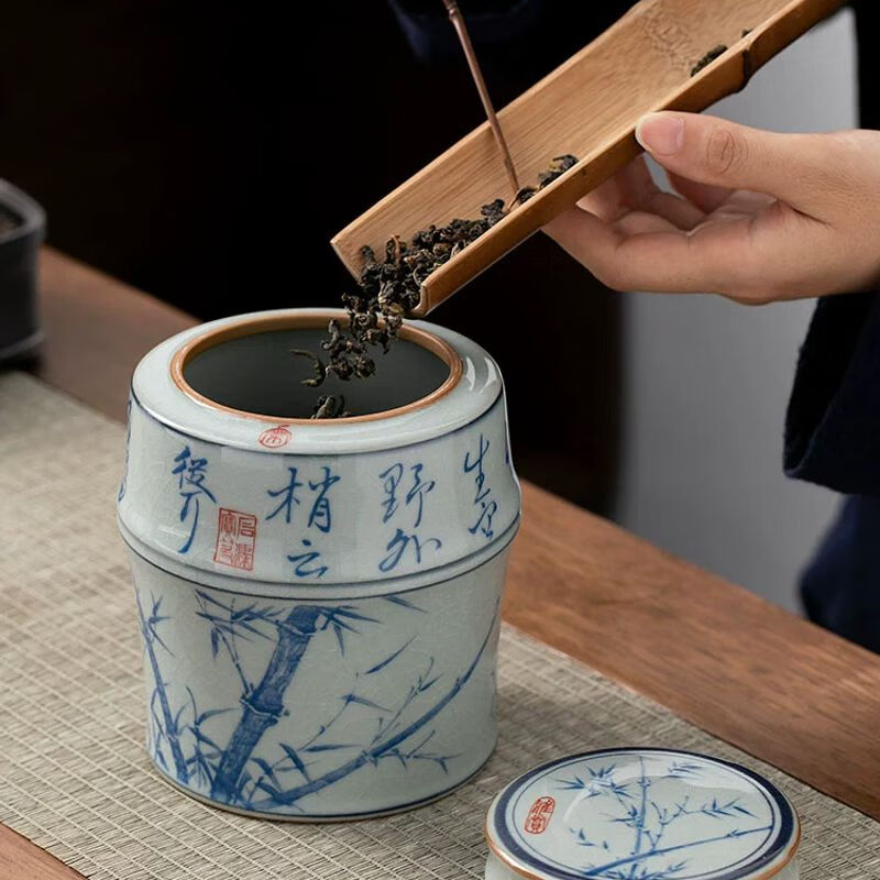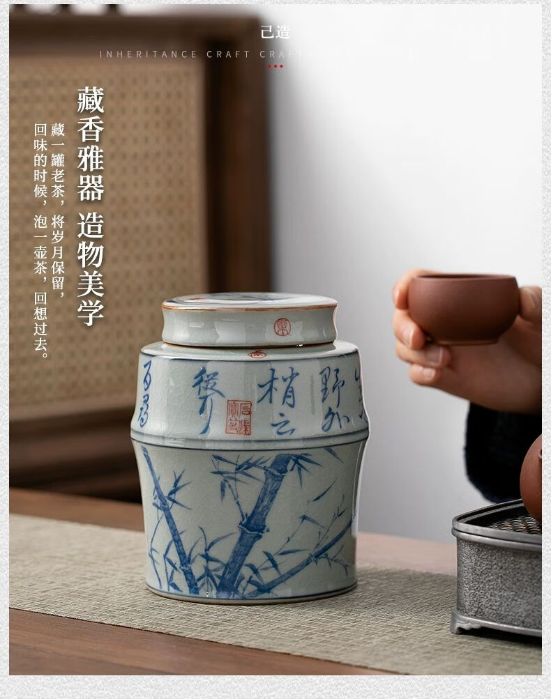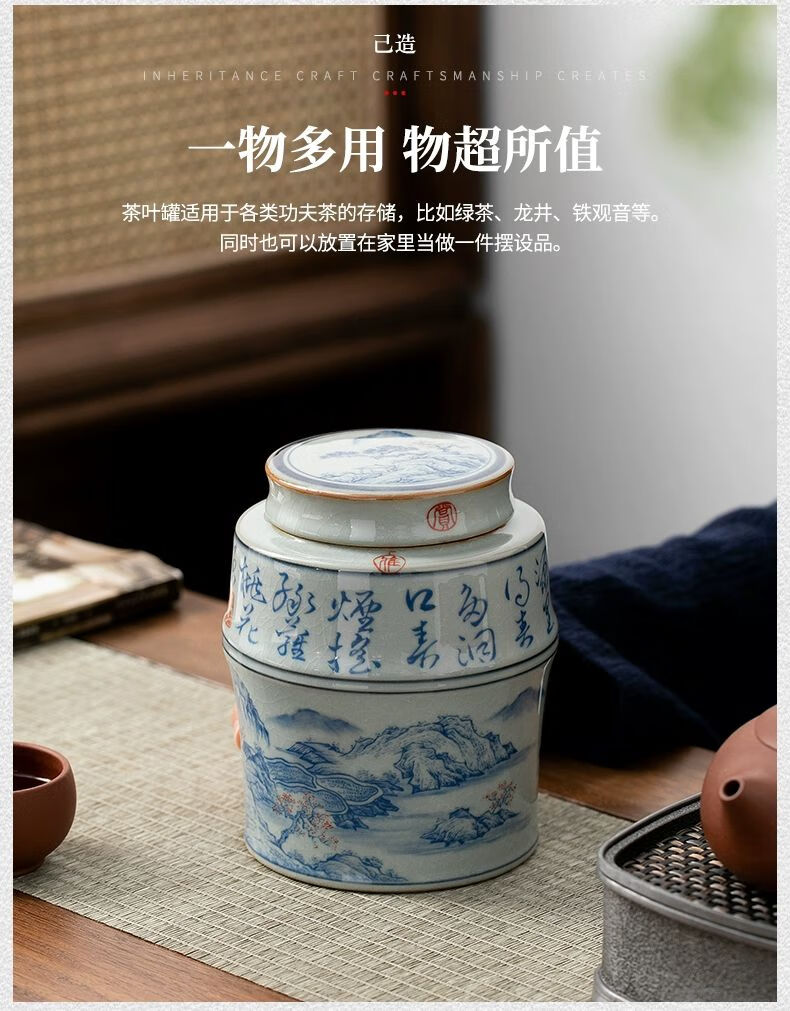商品名称: 浅钰茶叶罐陶瓷密封罐存茶罐中式复古家用普洱防潮空礼盒包装 桃花源记(哥窑开片)/个