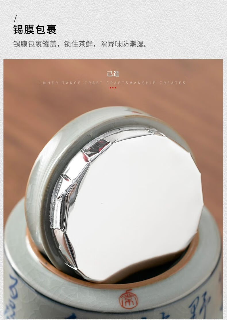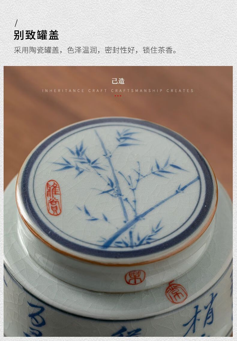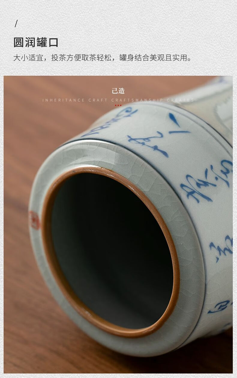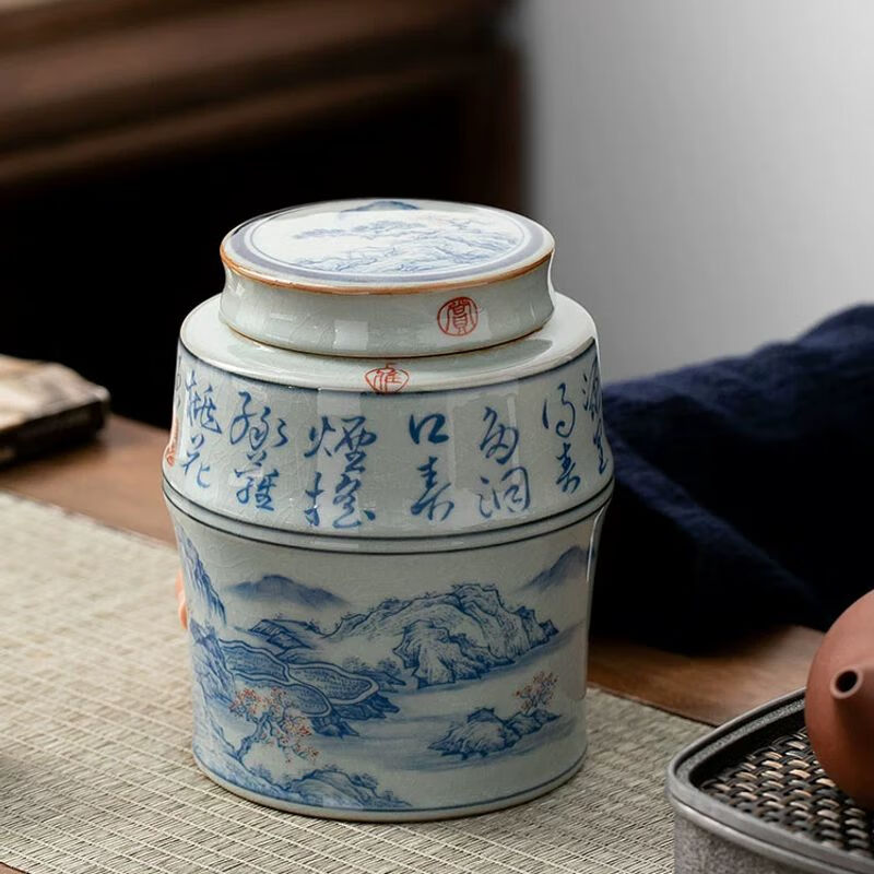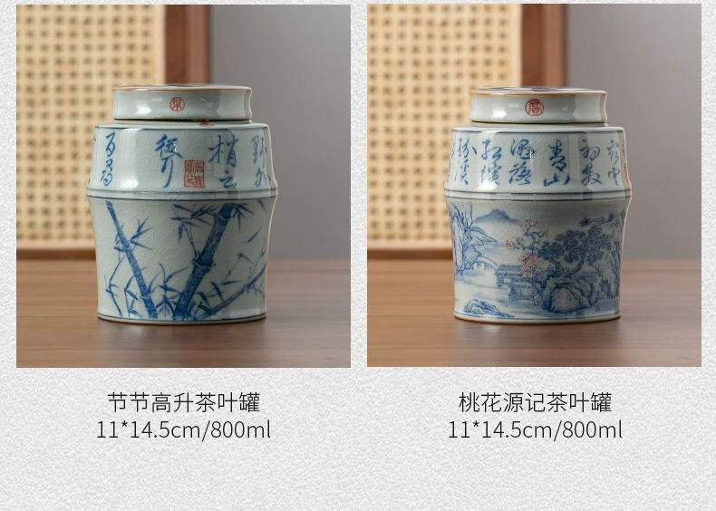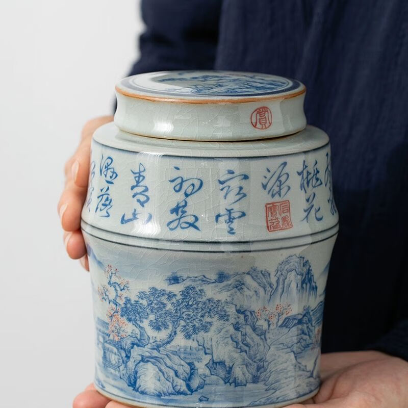 • 商品名称:浅钰茶叶罐陶瓷密封罐存茶罐中式复古家用普洱防潮空礼盒包装 桃花源记(哥窑开片)/个