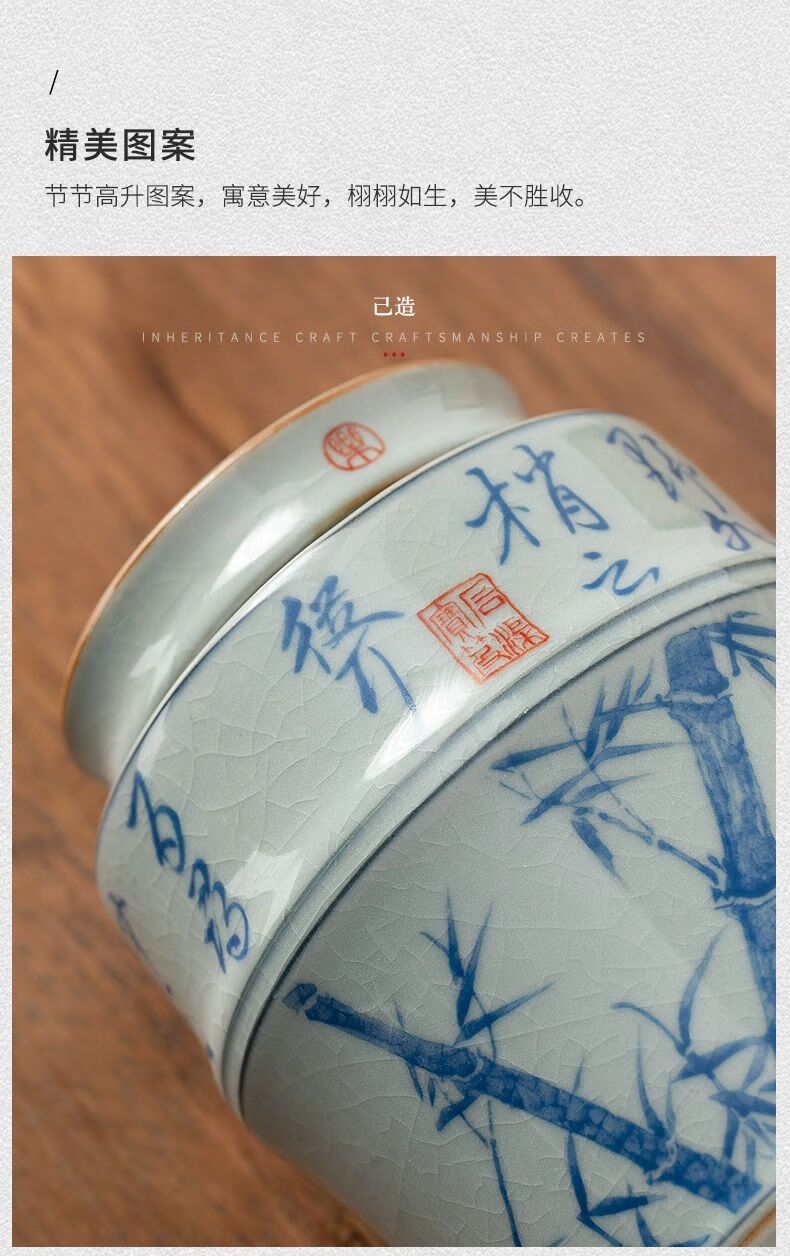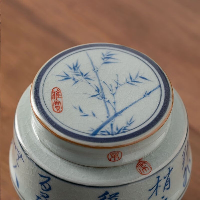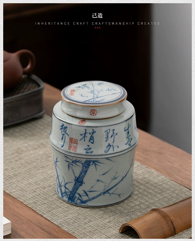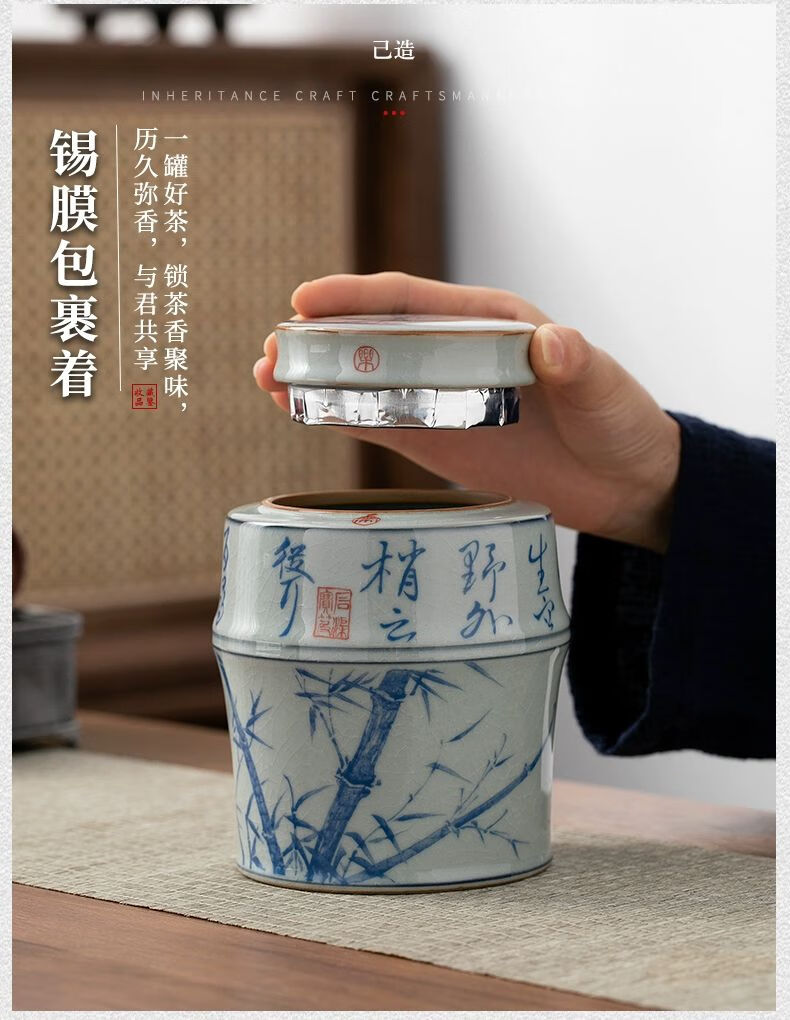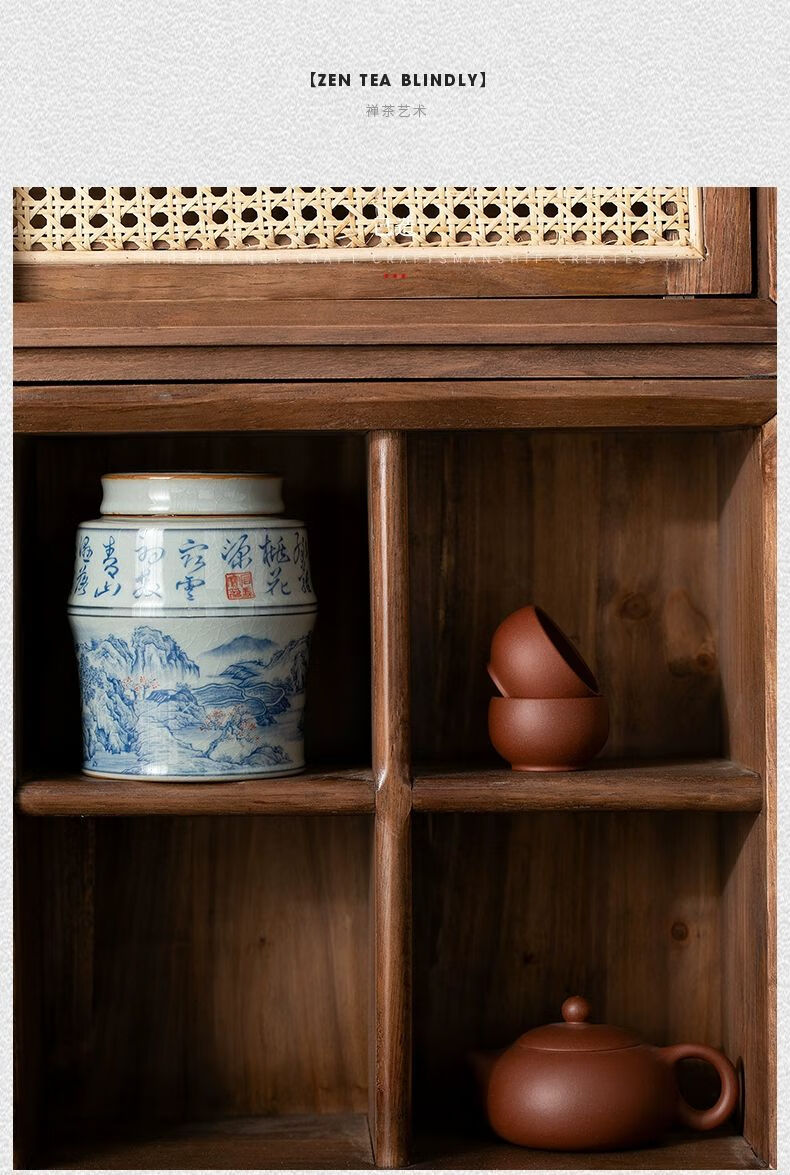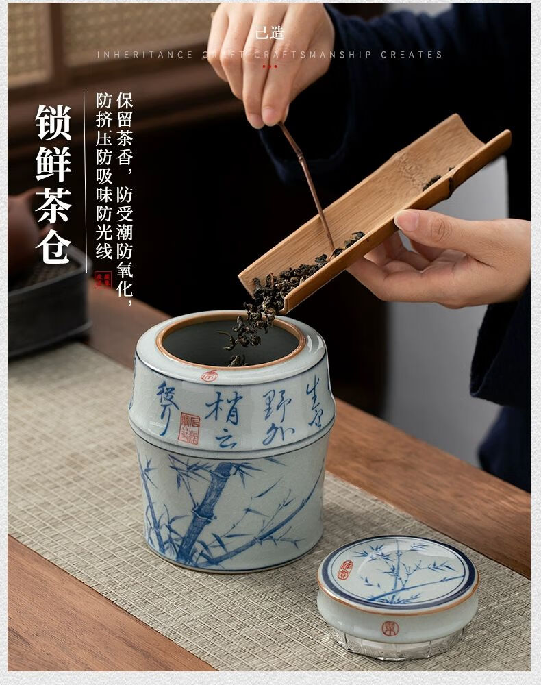 • 商品名称:浅钰茶叶罐陶瓷密封罐存茶罐中式复古家用普洱防潮空礼盒包装 桃花源记(哥窑开片)/个