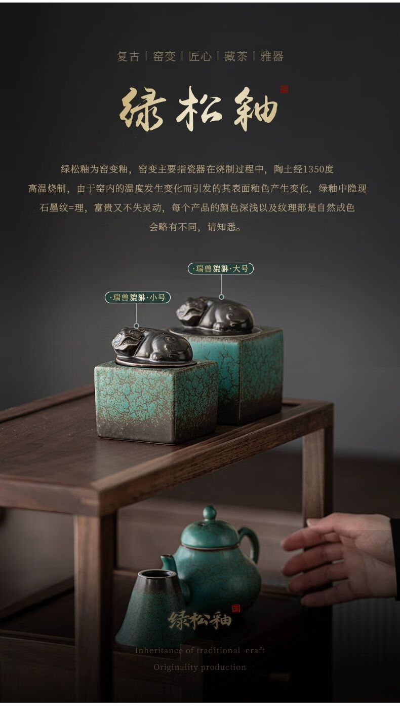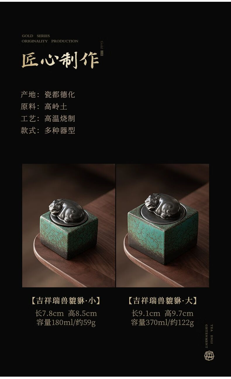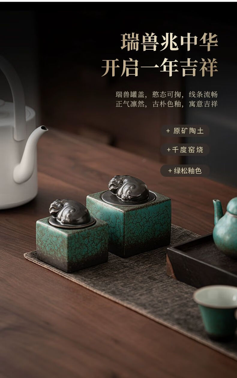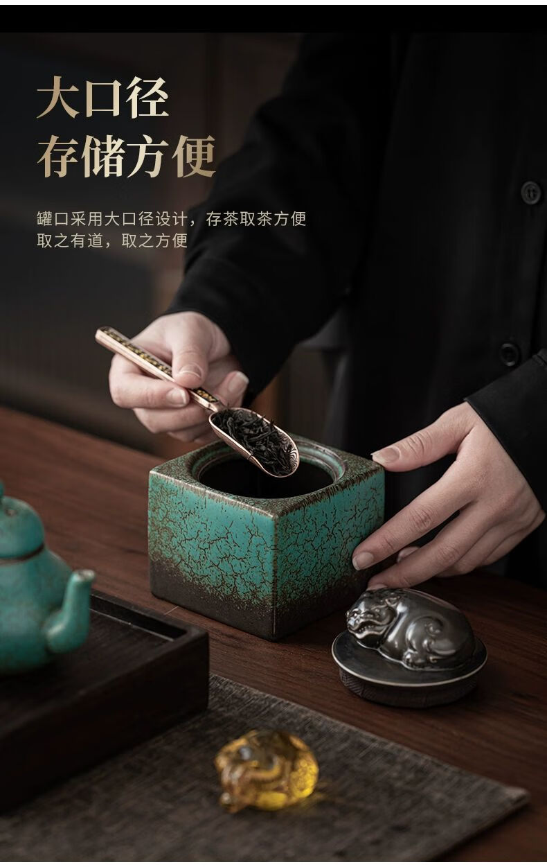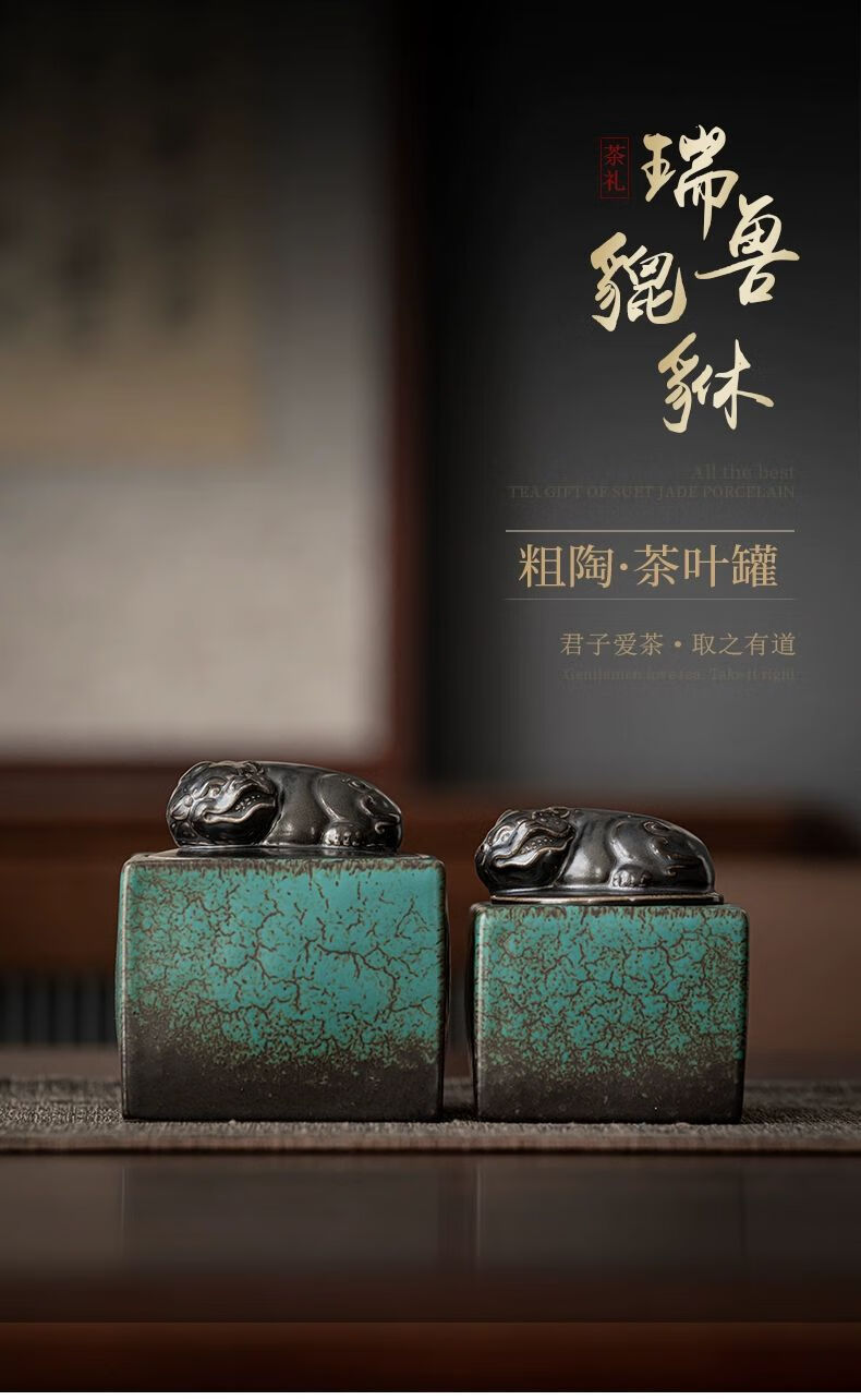 • 商品名称:靓厅复古陶瓷茶叶罐仿古瑞兽貔貅家用茶叶密封罐储茶罐 貔貅茶叶罐(小号)/个