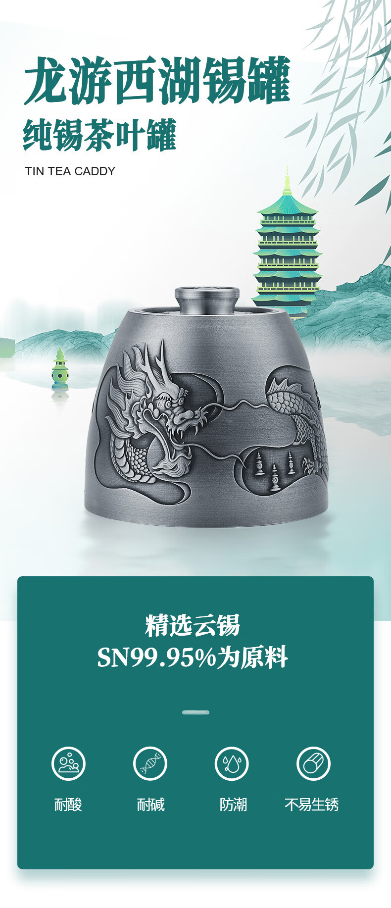 商品名称: 锡天下 龙游西湖 经典锡罐 茶叶罐620ml 父亲节礼物 龙游西湖/只