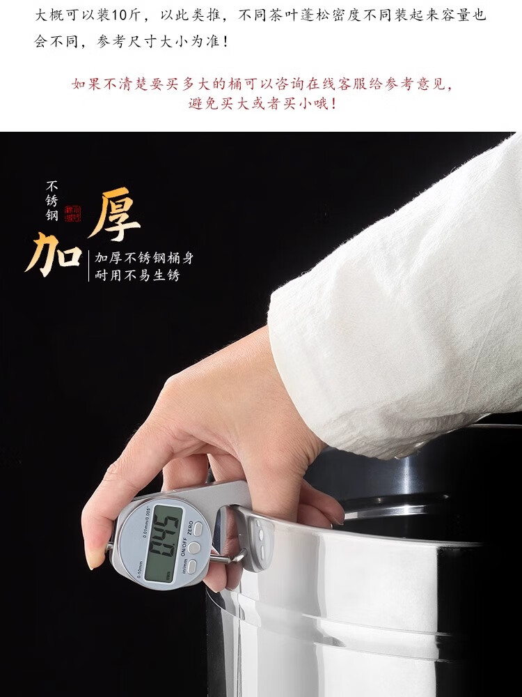• 商品名称:智星辉不锈钢陈皮茶叶储存罐家用圆形密封罐金属商用专用大容量储物罐子 5斤/个