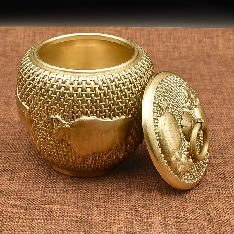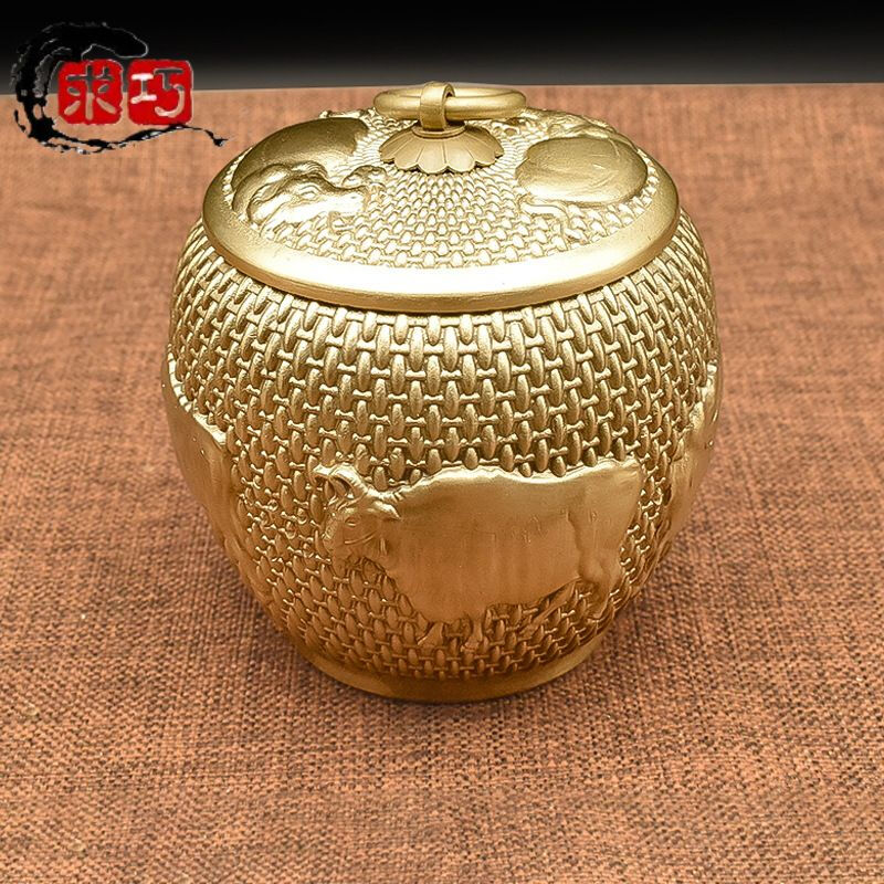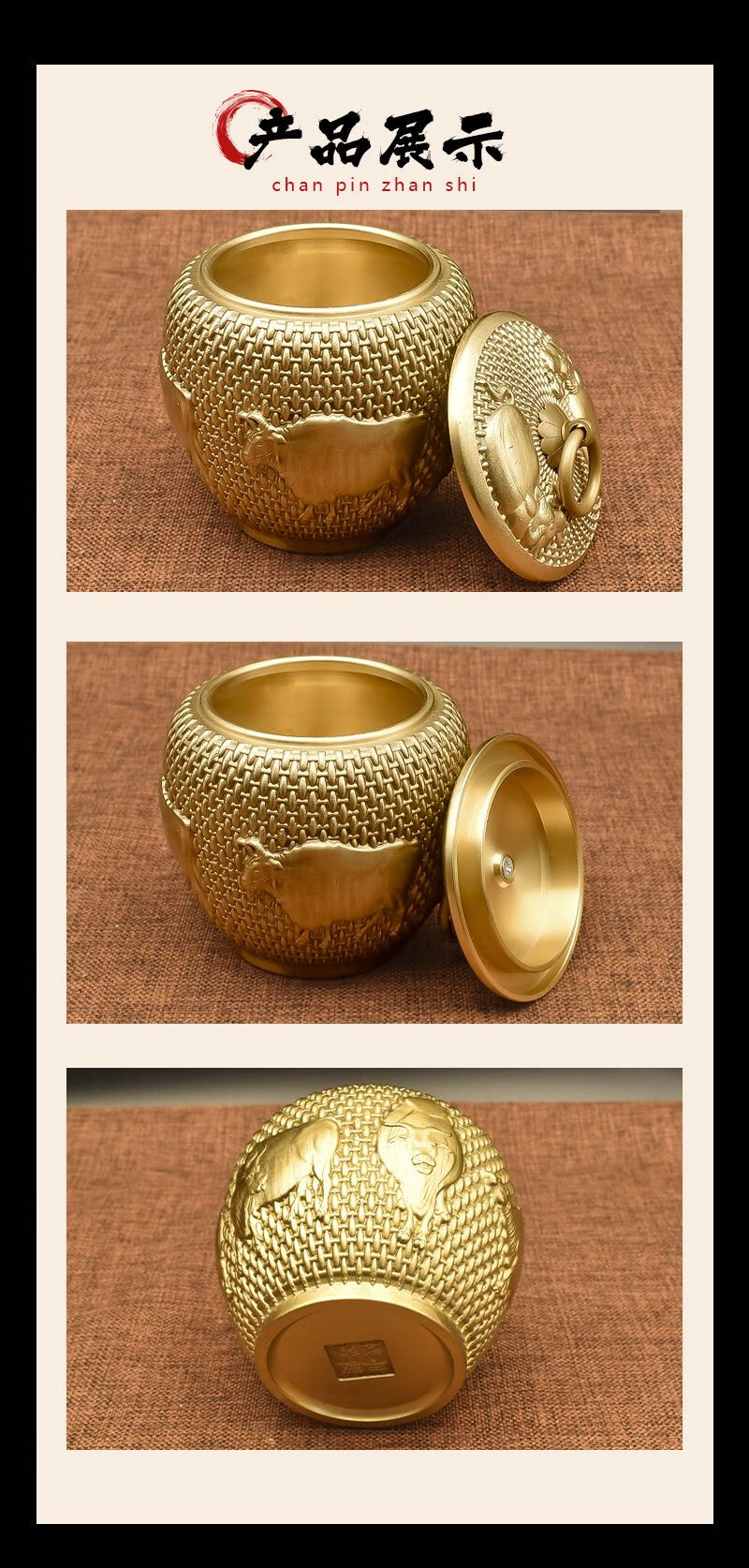 求巧茶叶罐黄铜五牛加厚工艺品装饰品开业送礼创意礼品办公室摆件 加厚加大黄铜五牛茶叶罐/个
