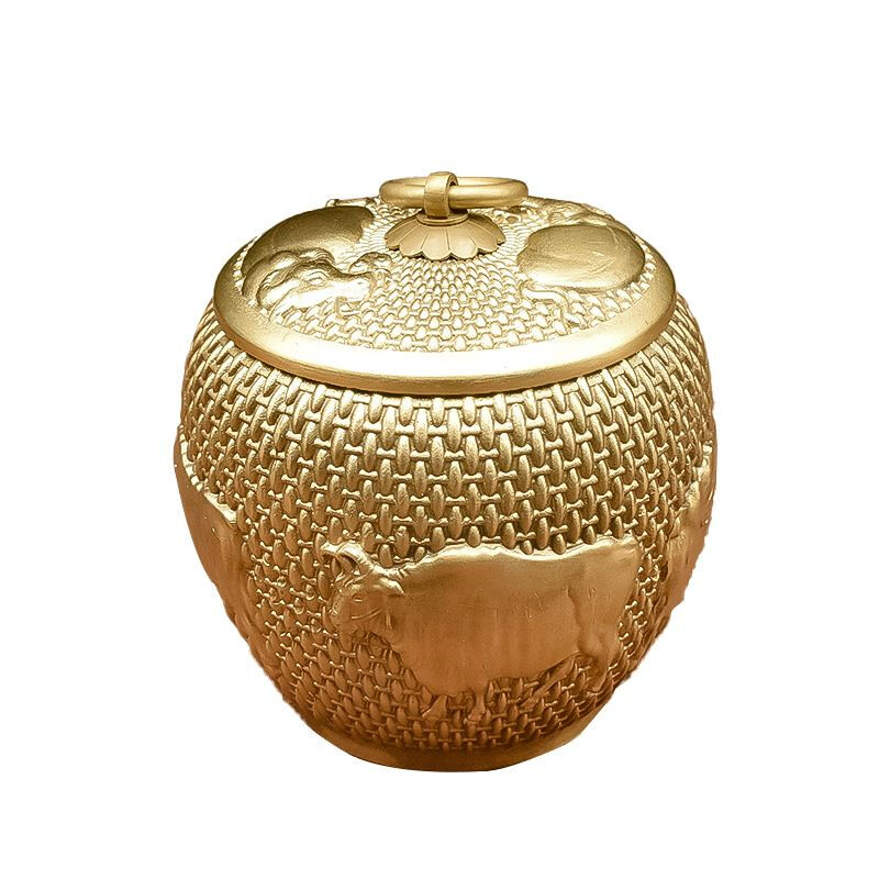 厨具  > 茶具  > 茶叶罐/茶饼盒  >  求巧  >  求巧茶叶罐黄铜五牛加厚工艺品装饰品开业送礼创意礼品办公室摆件 加厚加大黄铜五牛茶叶罐/个