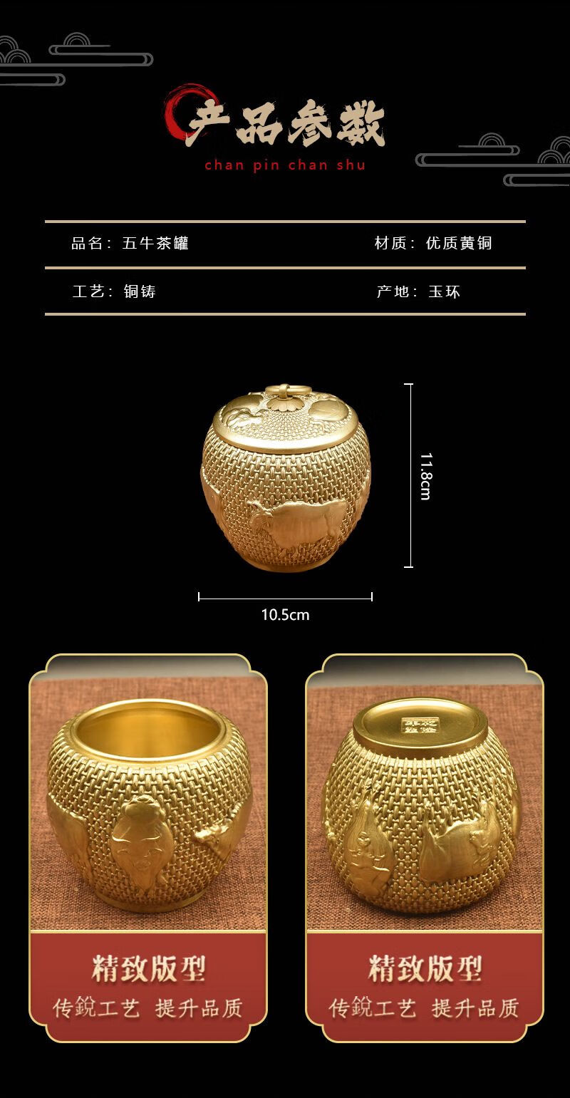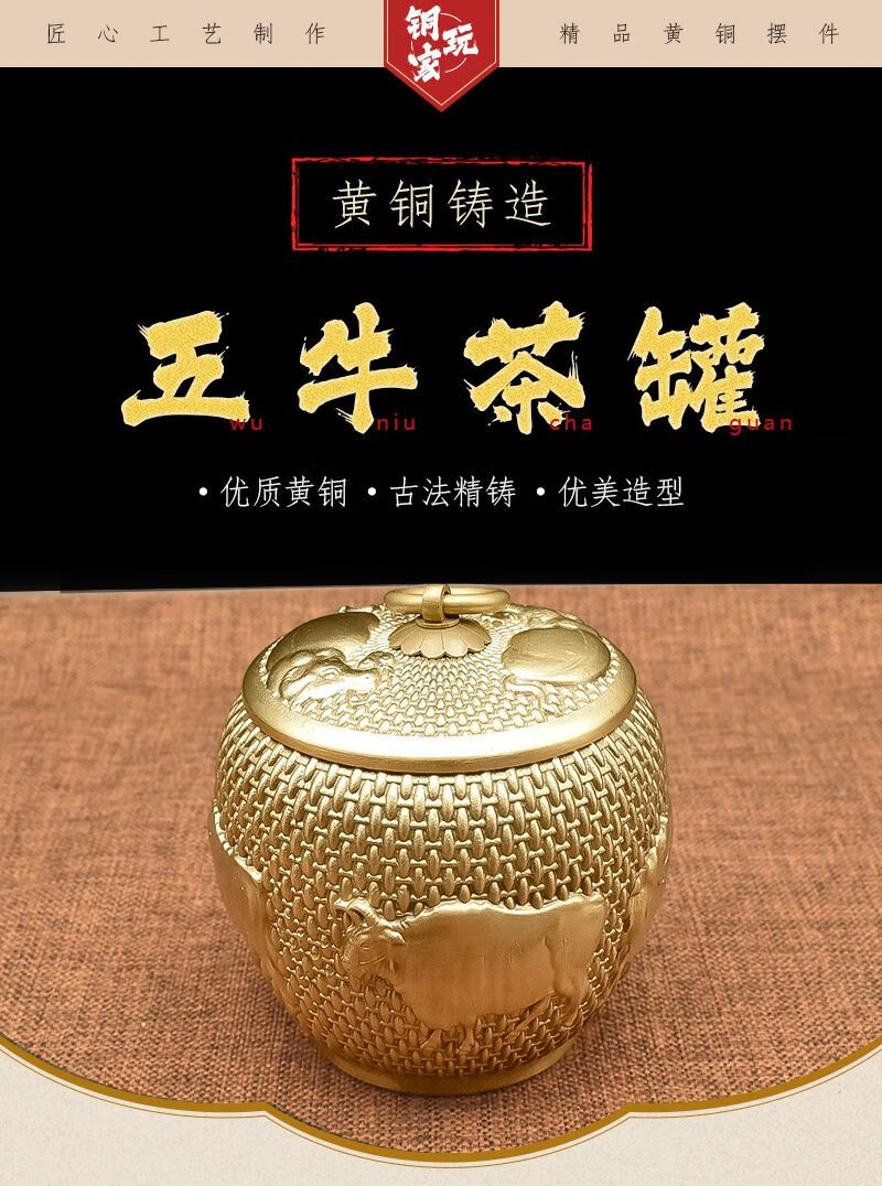 • 商品名称:求巧茶叶罐黄铜五牛加厚工艺品装饰品开业送礼创意礼品办公室摆件 加厚加大黄铜五牛茶叶罐/个