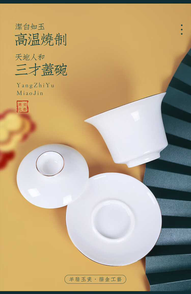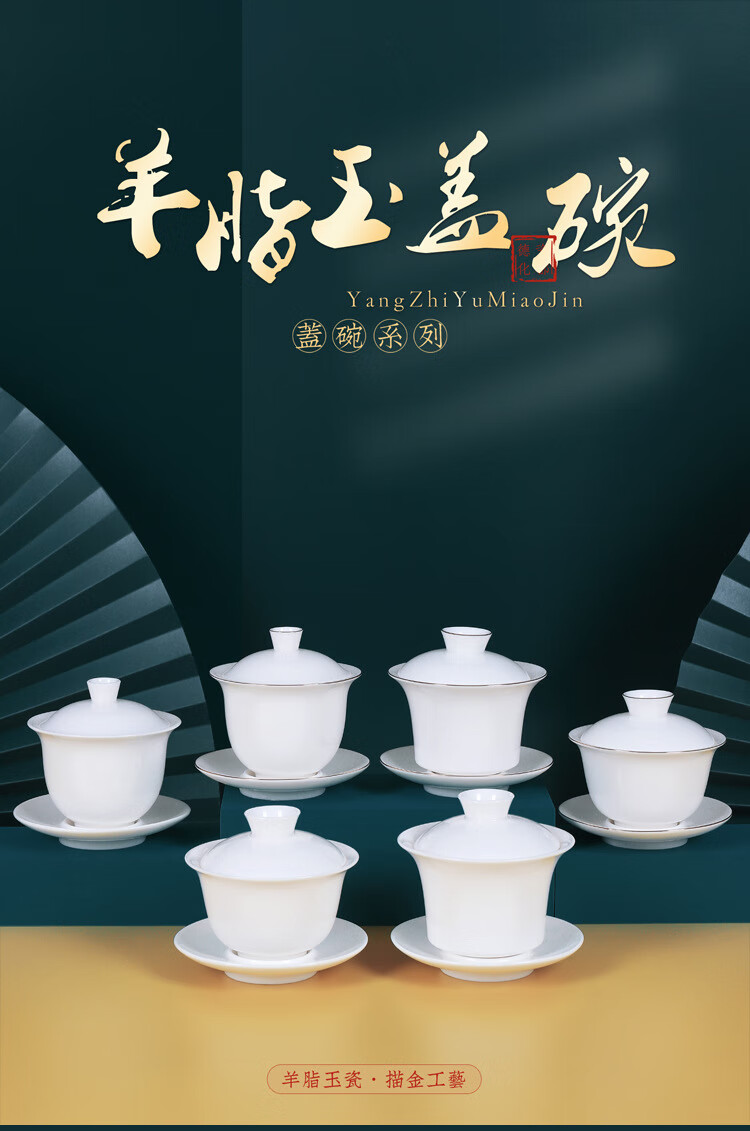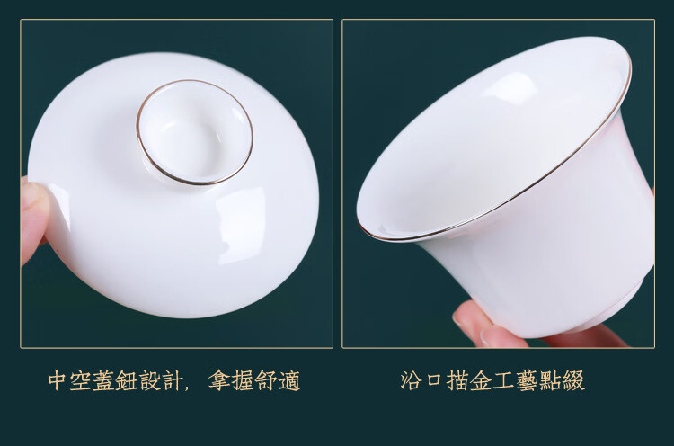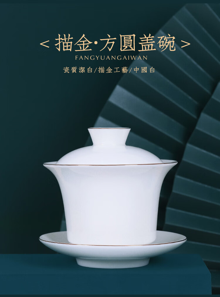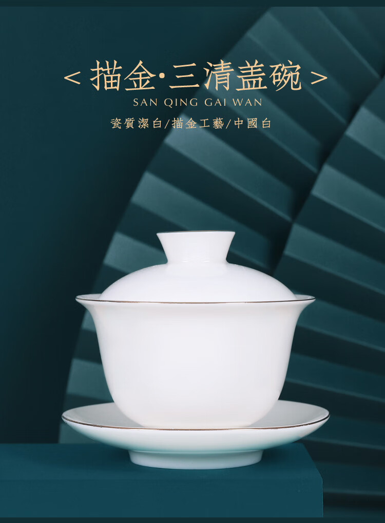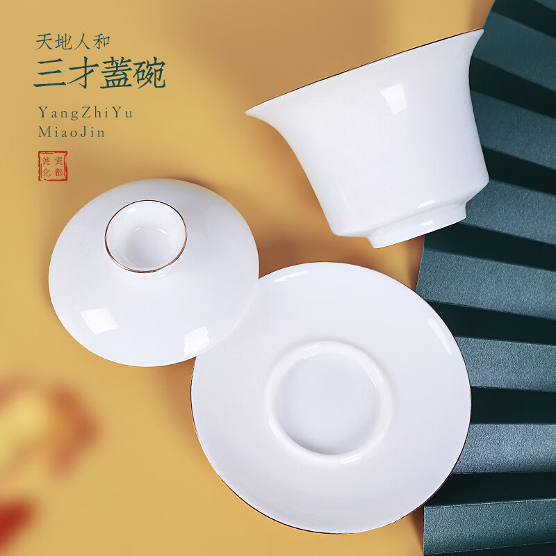 • 商品名称:茶循 德化羊脂玉瓷描金泡茶碗 三清盖碗-纯白单个【约170毫升】 主产品/件