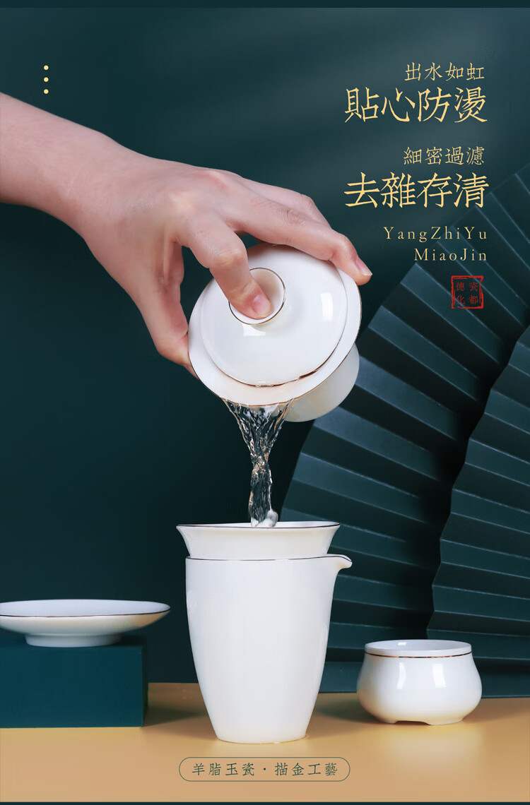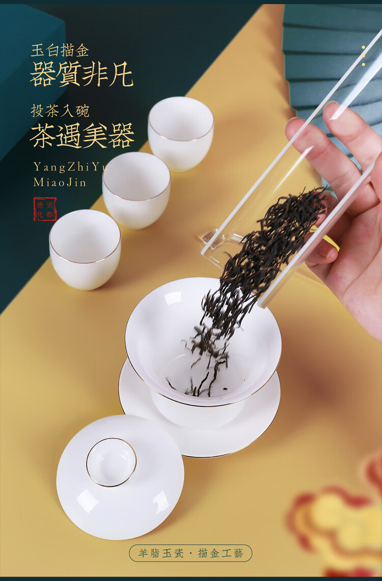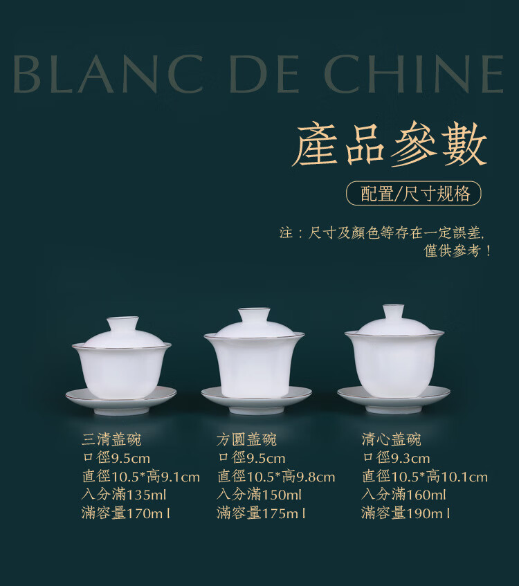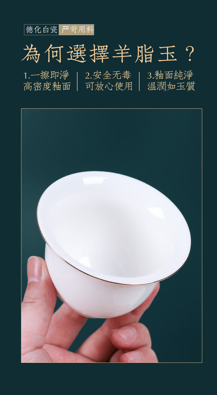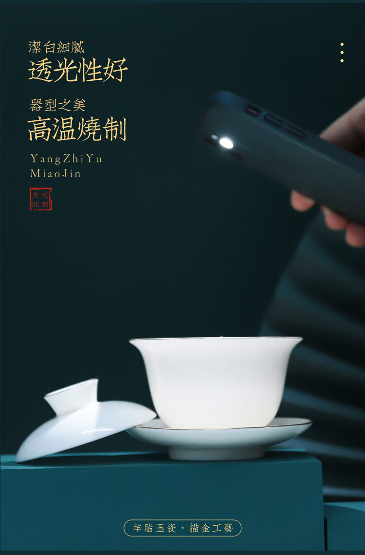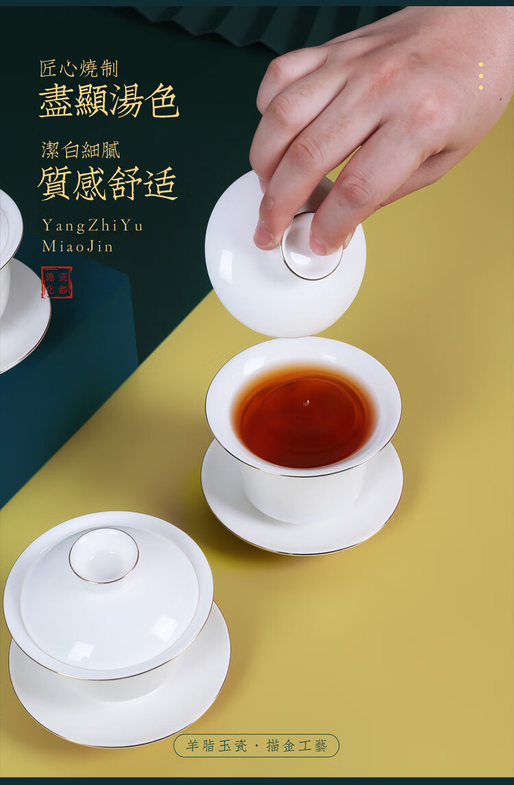 • 商品名称:茶循 德化羊脂玉瓷描金泡茶碗 三清盖碗-纯白单个【约170毫升】 主产品/件