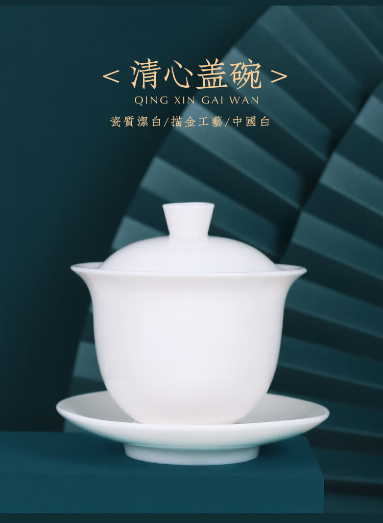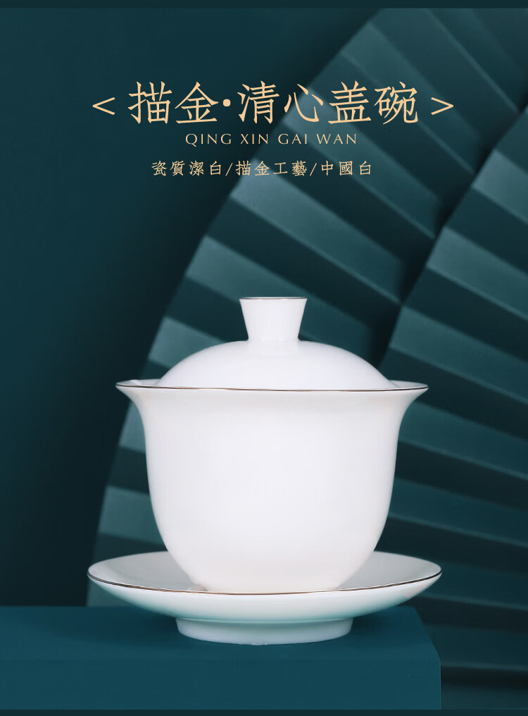 商品名称: 茶循 德化羊脂玉瓷描金泡茶碗 三清盖碗-纯白单个【约170毫升】 主产品/件