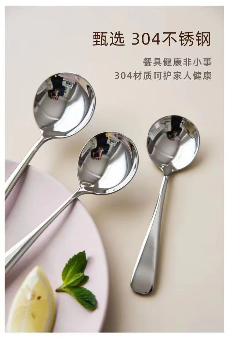 膳于福不锈钢勺子厂家可爱汤勺家用勺子网红勺儿童圆勺调羹韩式圆勺 SYF-1370/个