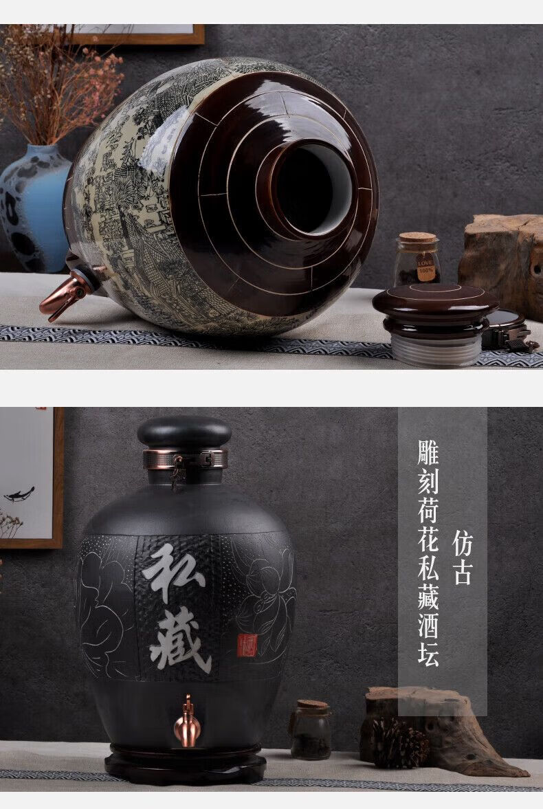 厨具  > 厨房储物  > 厨房储物器皿  >  瑾宇  >  瑾宇景德镇陶瓷泡酒坛子10-50斤酿酒缸仿古酒瓶家用存酒壶可选龙 30斤清上图无孔/个