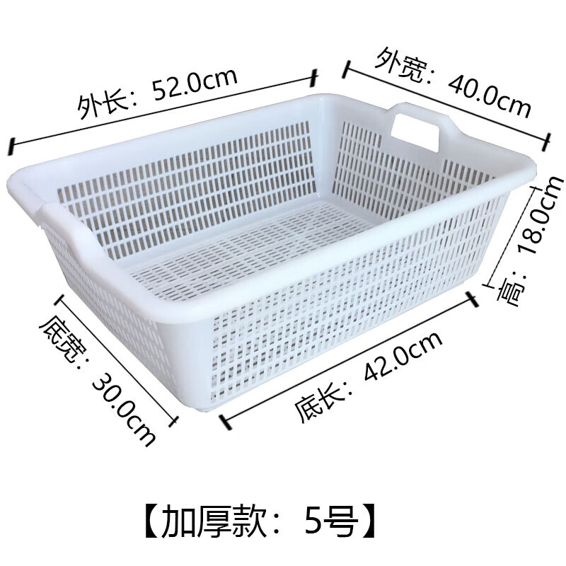 厨具  > 厨房储物  > 厨房储物器皿  >  莱羽炫  >  莱羽炫新料白色塑料框筐漏筐子收纳筐沥水洗菜篮 5号带把手 52*40*18 5号带把手 52*39.5*17/个